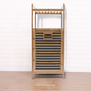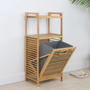 Bamboo Laundry Rack with Flip Basket, 2 Shelves, Scratch-Resistant, Large Capacity, Easy-to-Clean Design, Ideal for Home Storage