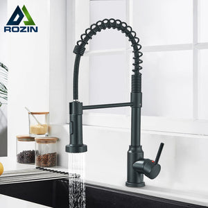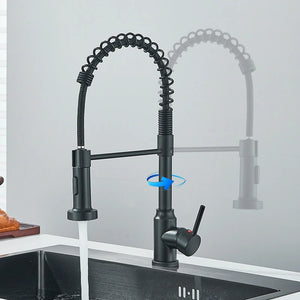 Black Flexible Kitchen Faucet Pull Down Spring Hot Cold Water Mixer Tap 360° Swivel Stream Sprayer Nozzle Kitchen Sink Tap Crane