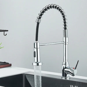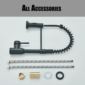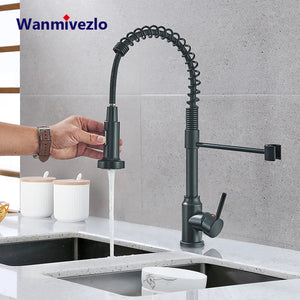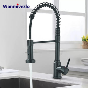 Black Spring Pull Down Kitchen Faucets Stream Spray Head Hot Cold Water Tap Stainless steel Rotation Kitchen Mixer Tap Crane