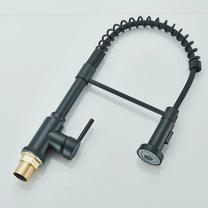 Dual Mode Spout, 360 Degree Rotating: matte black spring kitchen faucet mixer tap