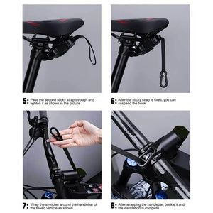 4.Easy to Install: Our cycling tow rope ensures protection for you and your travel companions across all terrains. Enjoy peace of mind and easy installation under the seat cushion, seat tube, or front of the car, without needing any tools