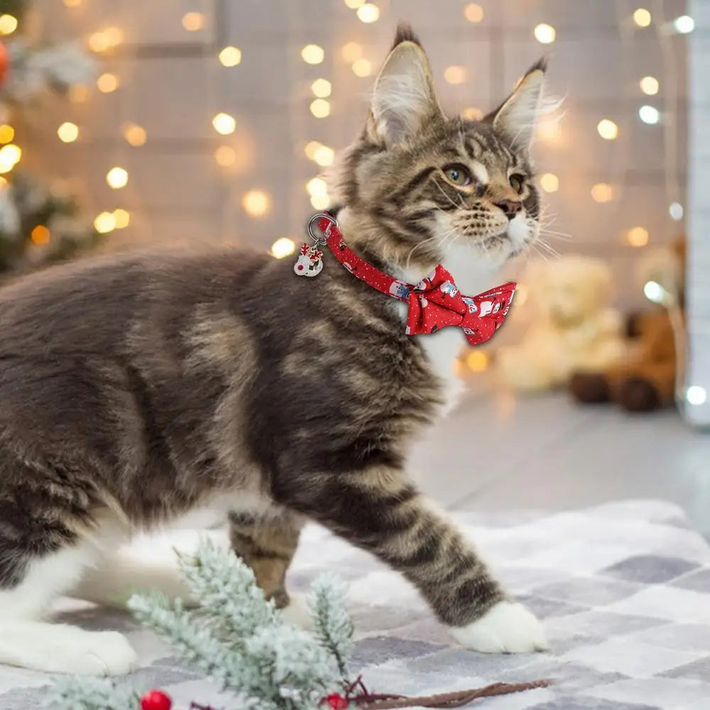 Our Cat Collars with Bow Tie Bell feature a cute Santa Claus and bells pattern, and the bow tie can be removed with an elastic band. The collar is designed to provide both safety and comfort for your feline friend, with a bell that will ring when pressure is applied. Give your cat the perfect accessory with this cat collar with bell.