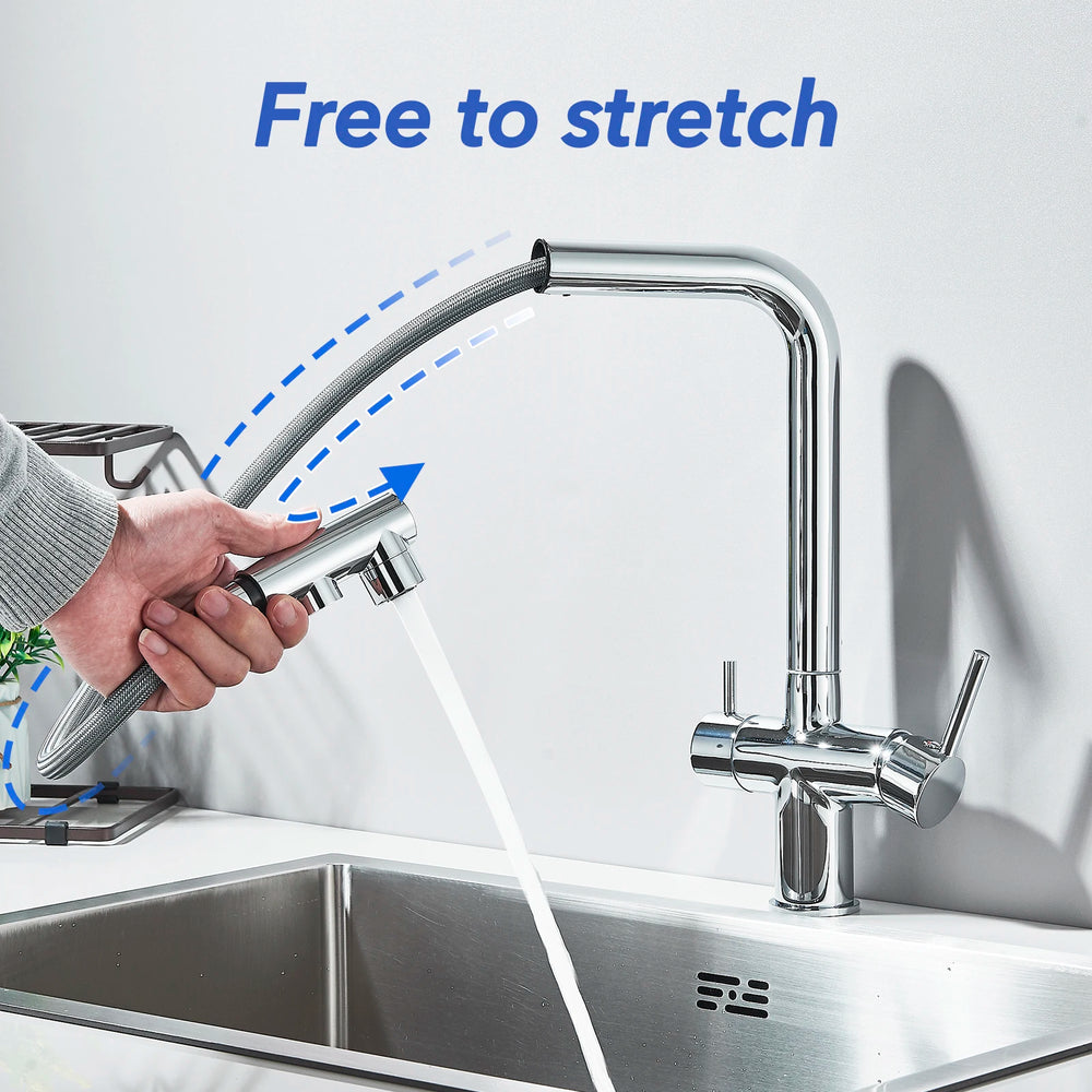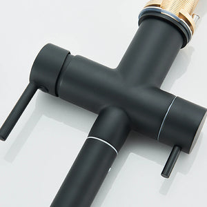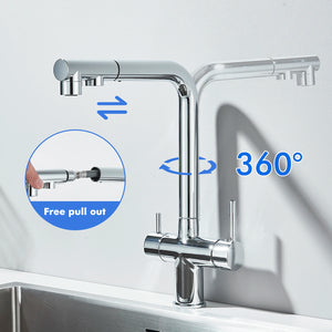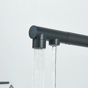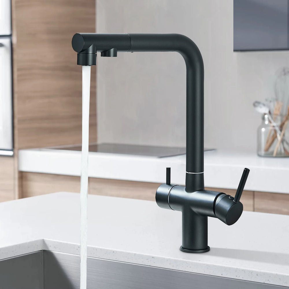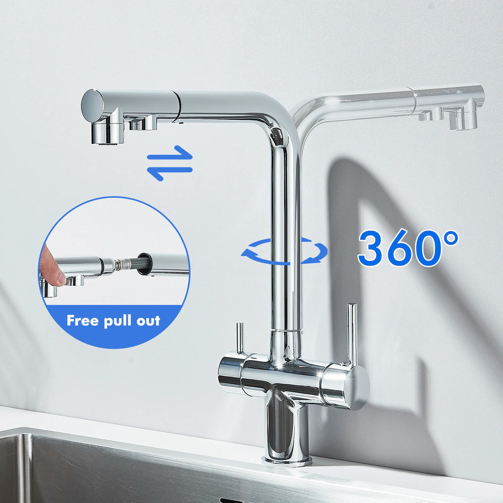 Black Chrome Filter Pull Out Kitchen Faucet Deck Mount 360 Degree Rotation PurifiedTapware Cold Hot Crane Tap Dual Spouts Drink