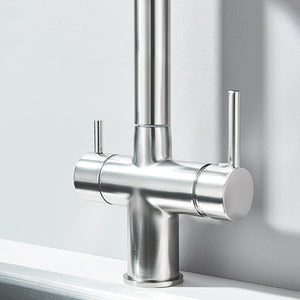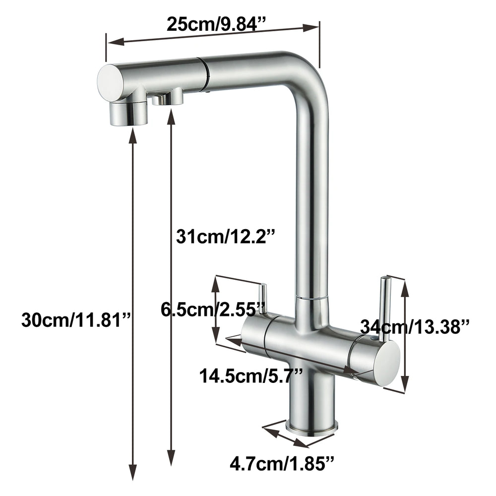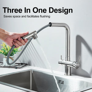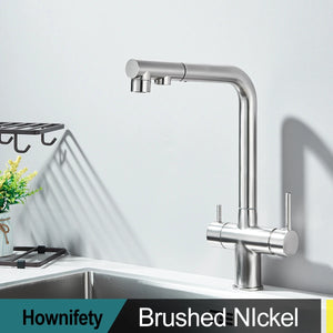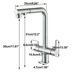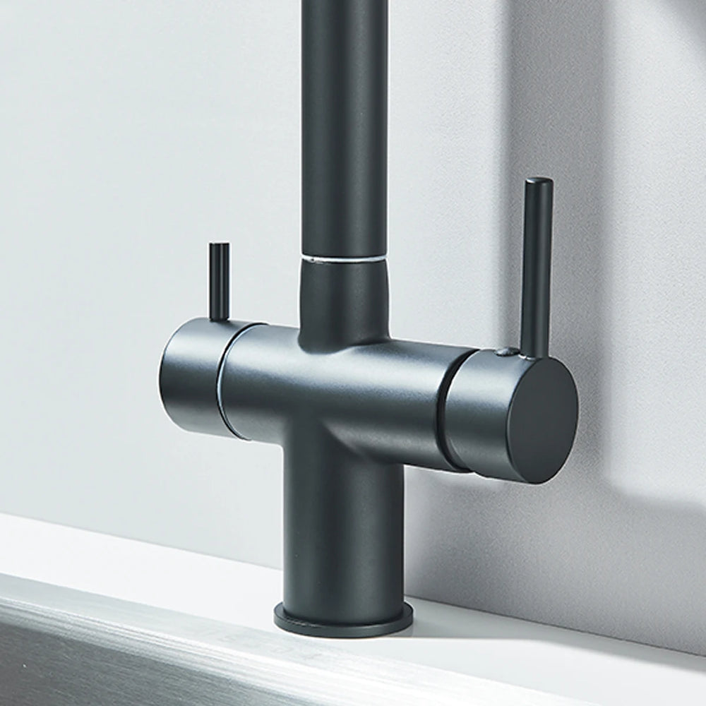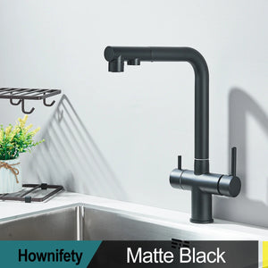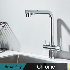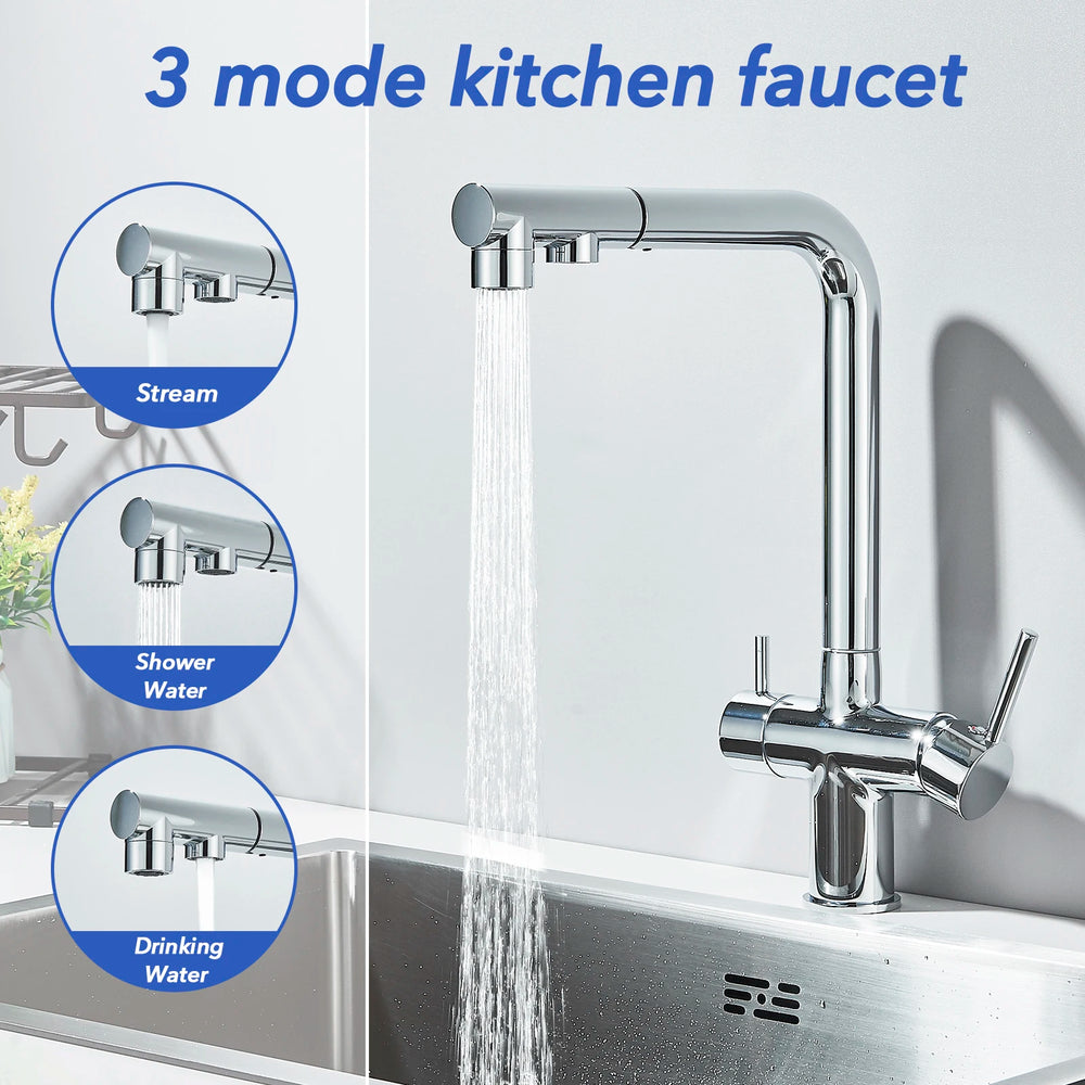 Black Chrome Filter Pull Out Kitchen Faucet Deck Mount 360 Degree Rotation PurifiedTapware Cold Hot Crane Tap Dual Spouts Drink