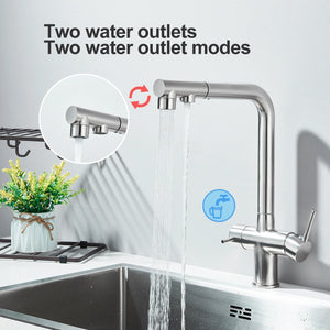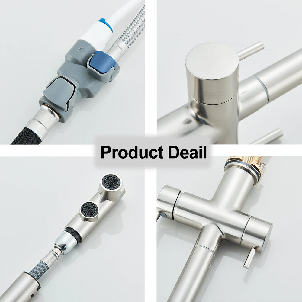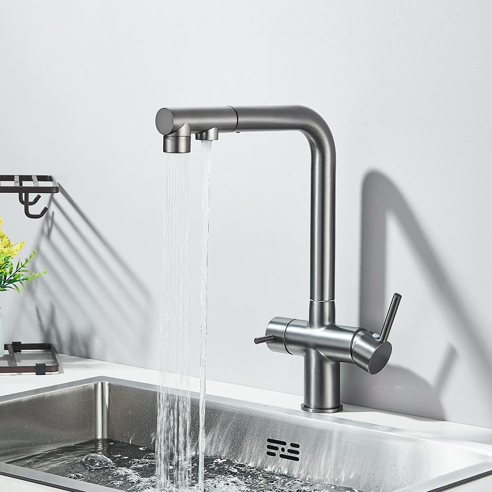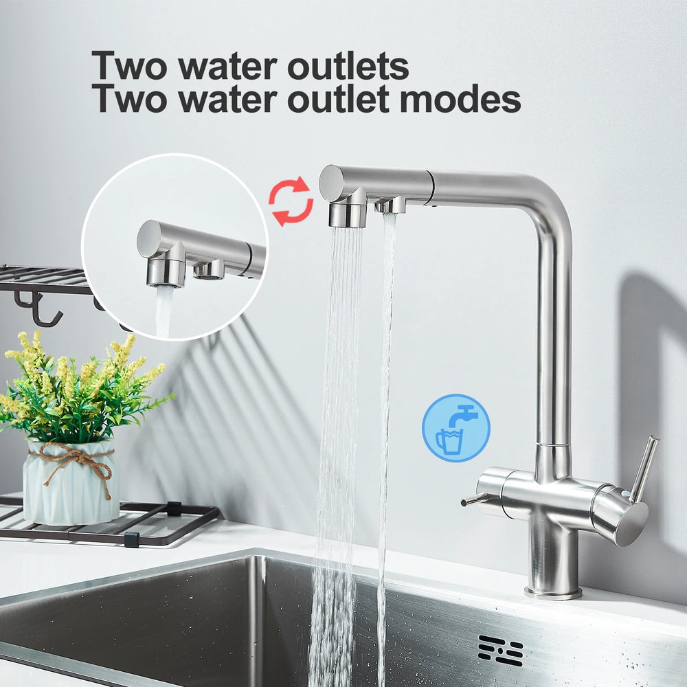 Chrome Black Filter Pull Out Kitchen Faucet Deck Mount 360 Degree Rotation Purified Tapware Cold Hot Crane Tap Dual Spouts Drink