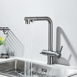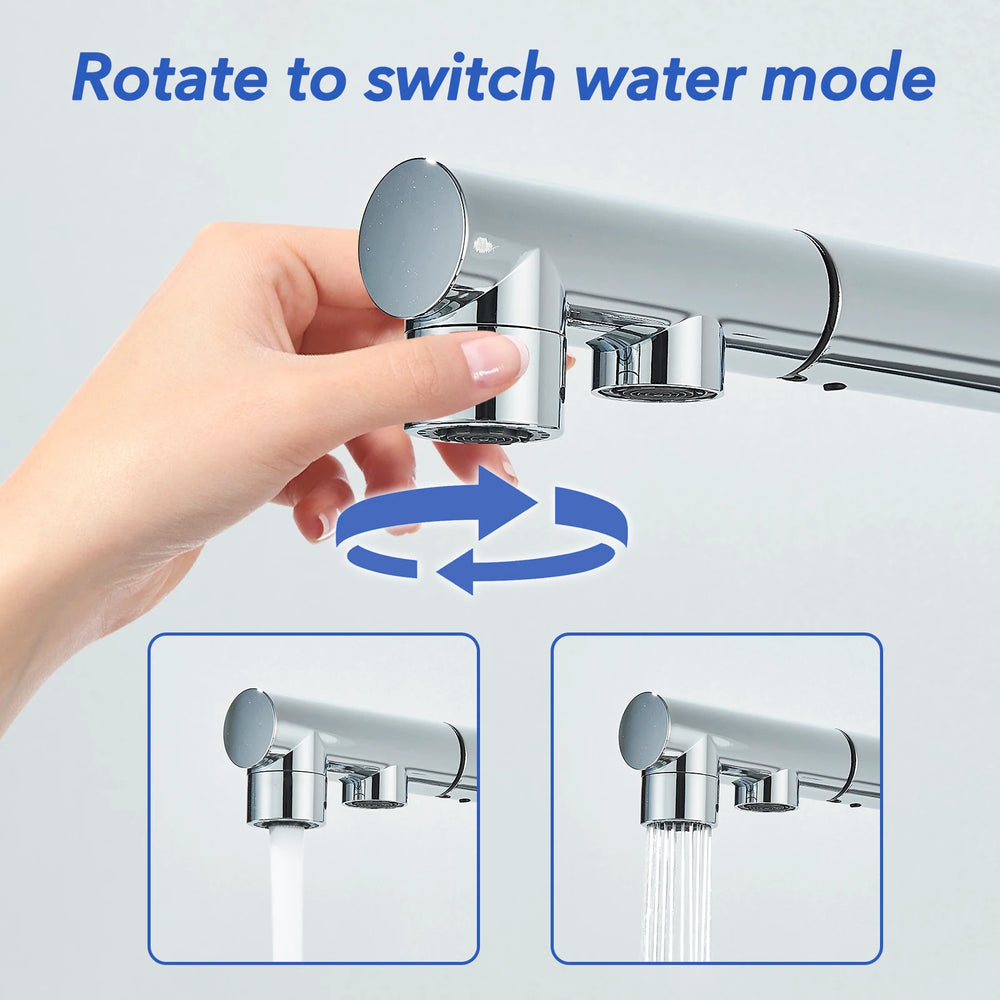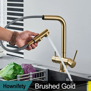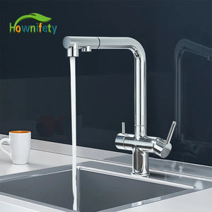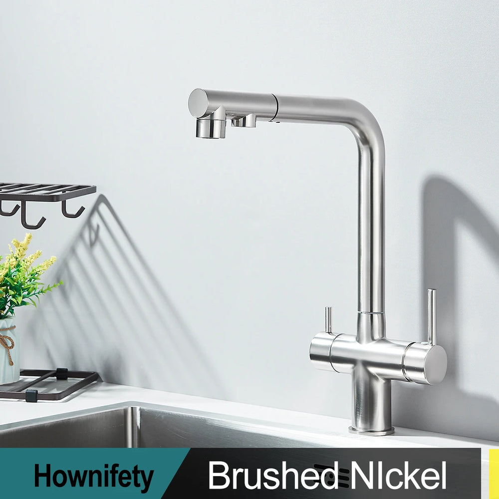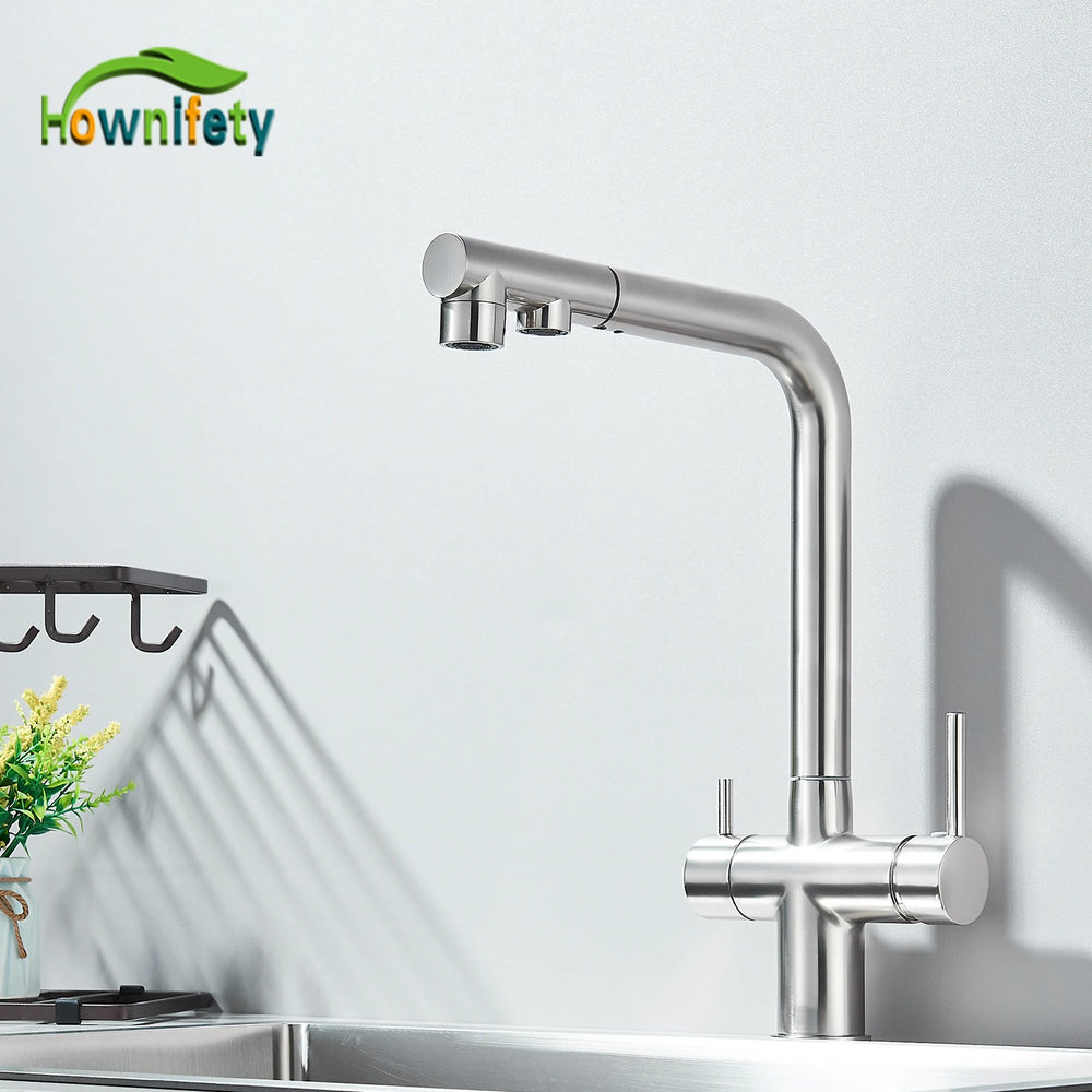 Chrome Black Filter Pull Out Kitchen Faucet Deck Mount 360 Degree Rotation Purified Tapware Cold Hot Crane Tap Dual Spouts Drink