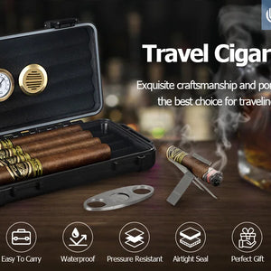 Cigar Humidor with Humidifier and Hygrometer, Travel Case, Waterproof, Sealed Cigar Humidor for 4-5 Cigar
