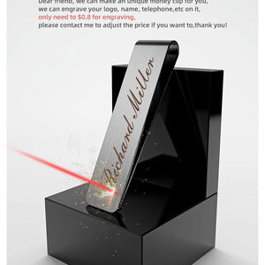 Dear friend, we can make an unique money clip for you, we can engrave your logo, name, telephone,etc on it, only need to $0.8-1.6 for engraving,please contact me to adjust the price if you want to,thank you!