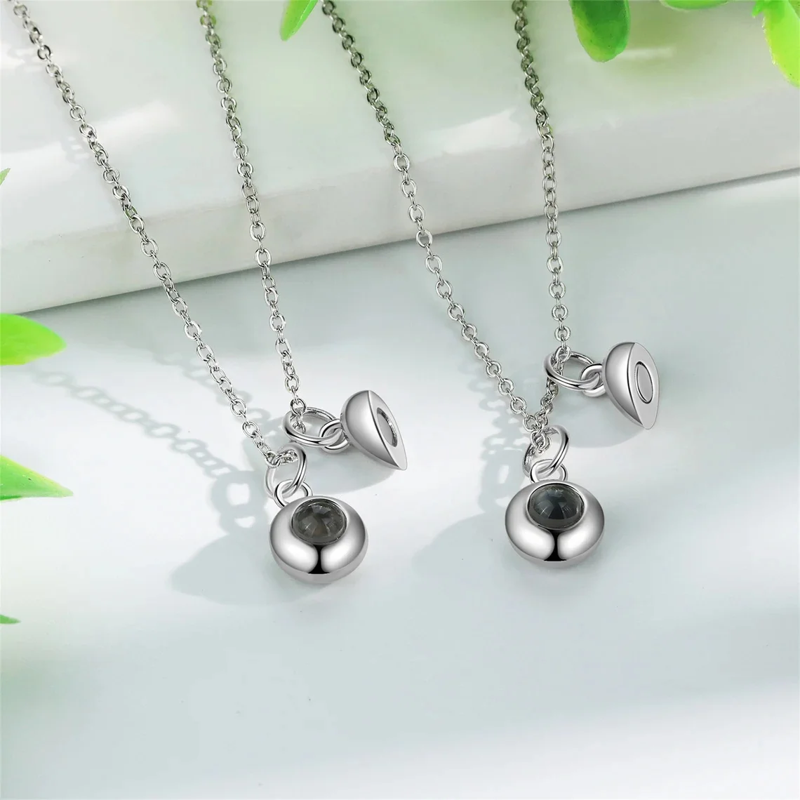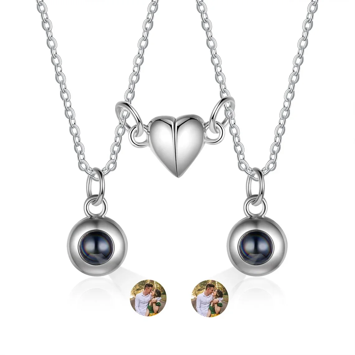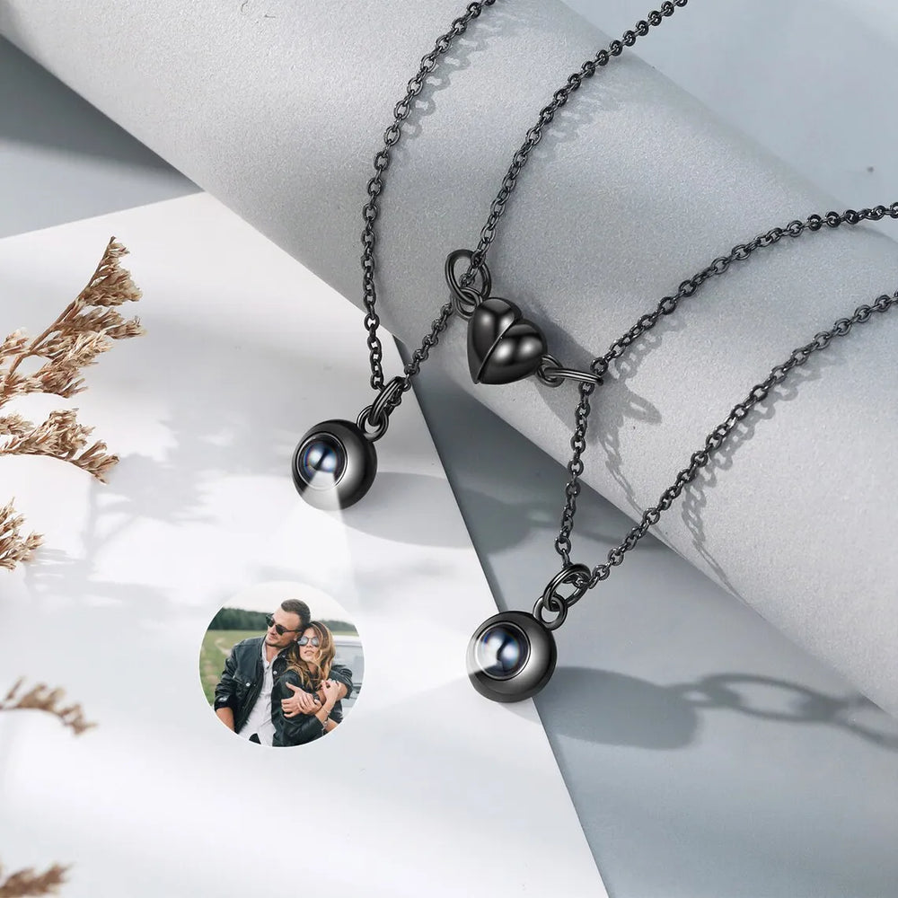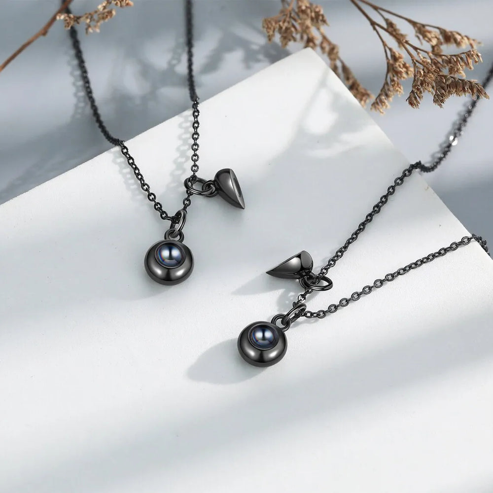 Custom Projection Photo Necklace For Couples Stainless Steel Necklace With Personalized Photo Projection Valentine Jewelry Sets
