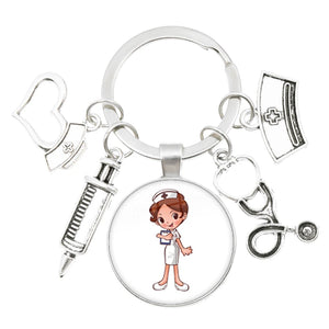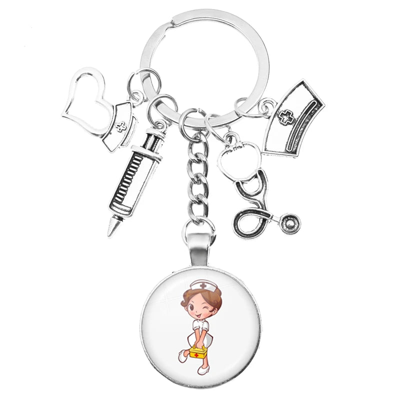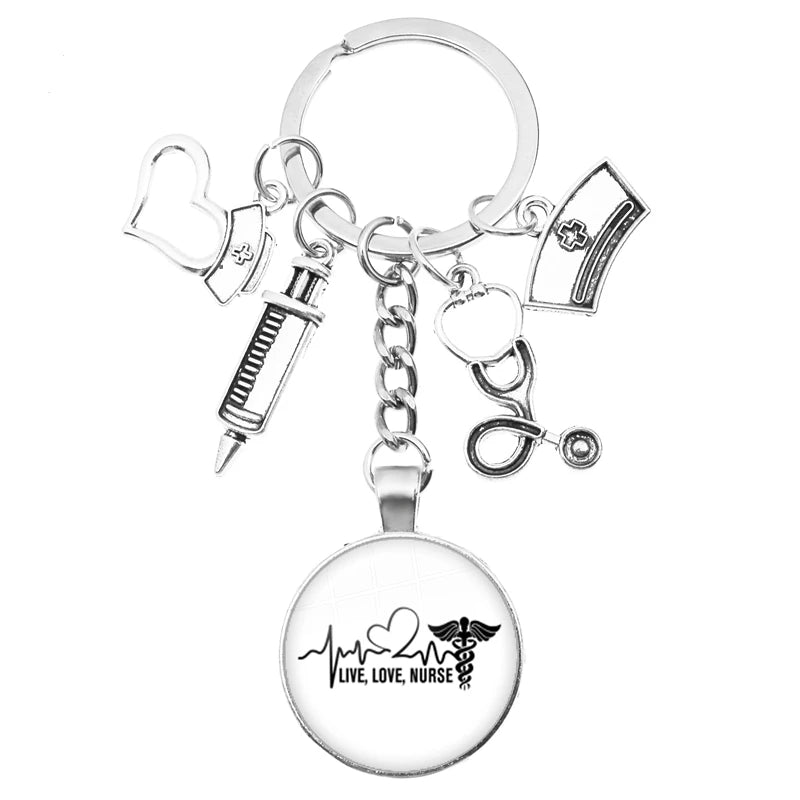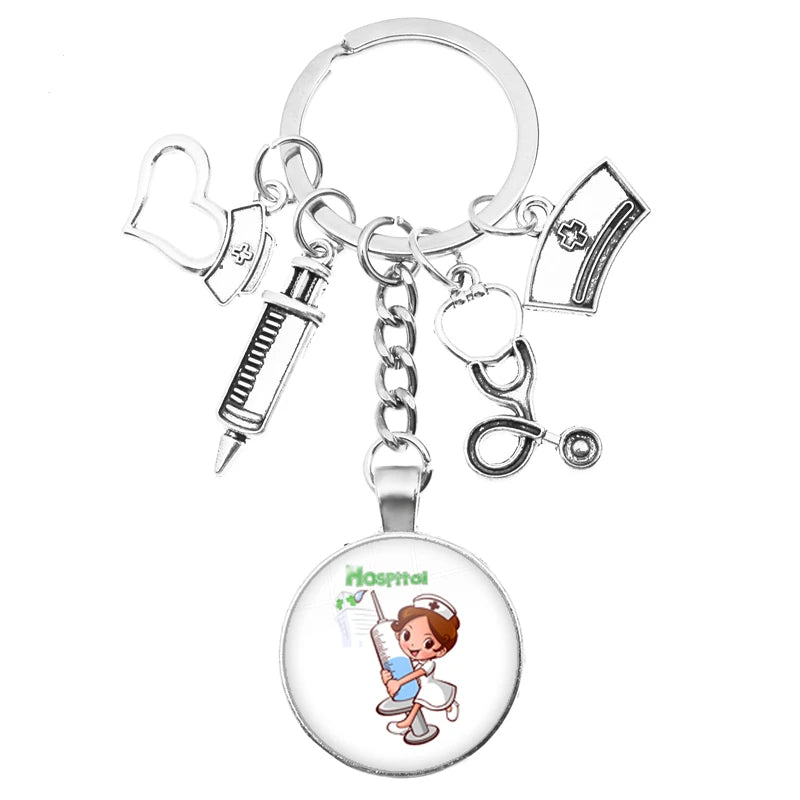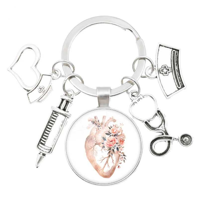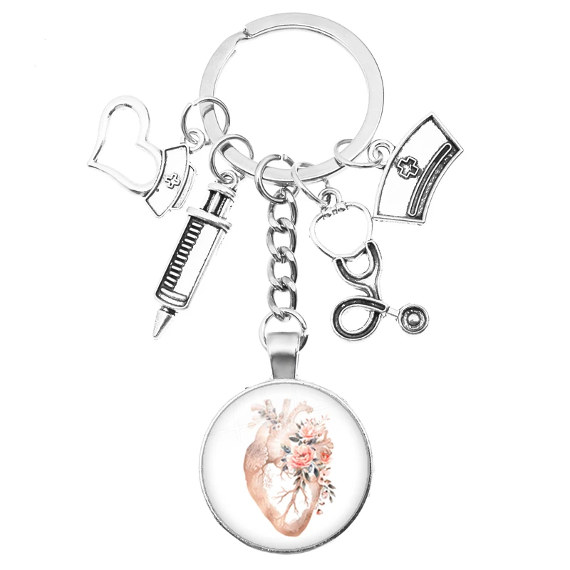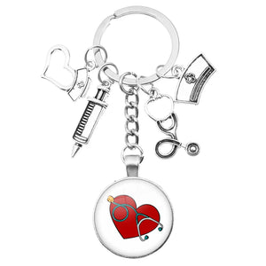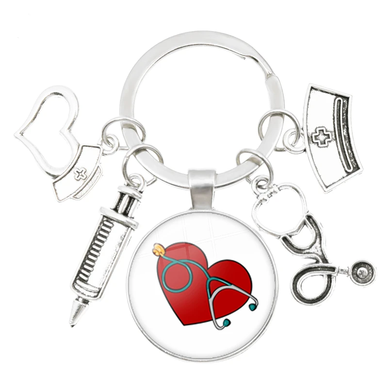 Cute Medical Keychain with Love Heart Key Ring Fashion Jewelry Thanksgiving Gift Key Holder for Nurse and Doctor