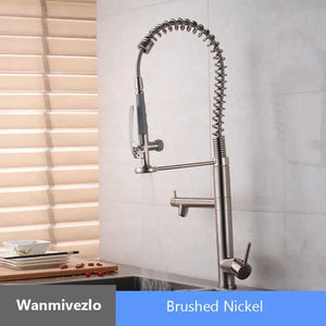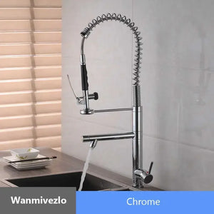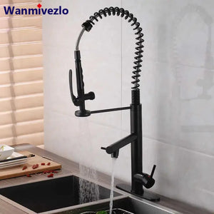 Deck Mounted Spring Pull Down Kitchen Faucet Swivel Handheld Sprayer Dual Spout Mixer Tap Kitchen Mixer Crane Cold Hot Water Tap