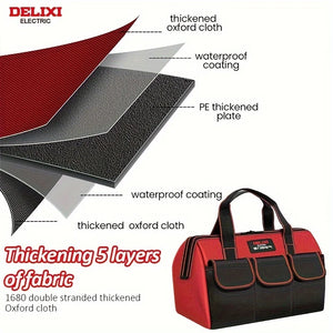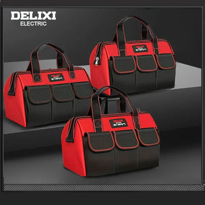 DELIXI ELECTRIC Soft-soled Bag of Three, Multi-pocket Wide-Mouth Tool Handbag, Home Storage, With Adjustable Shoulder Strap