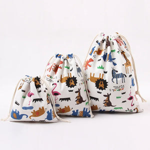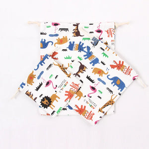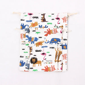 Drawstring Cartoon Animals Printed Storage Bags Organizer Cotton Linen Jewelry Cosmetic PouchBaby Clothing Kids toys Candy Bags