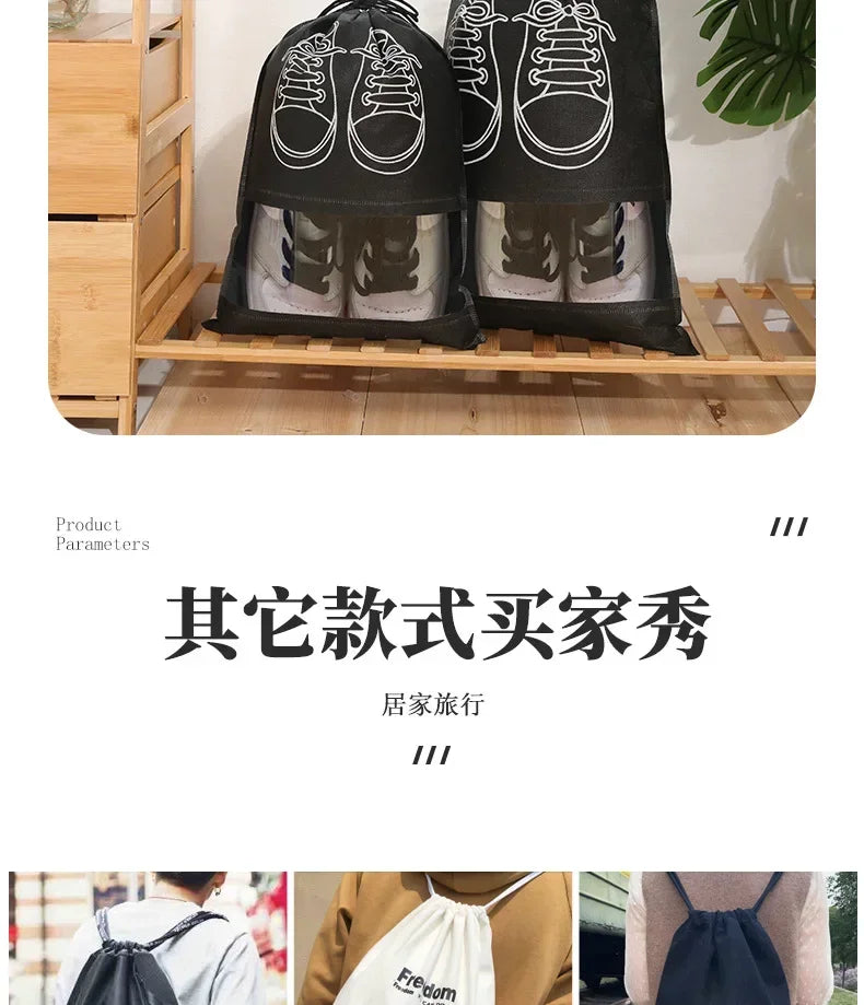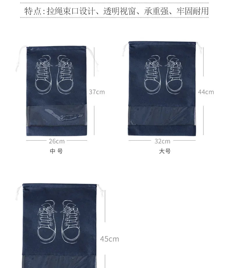 Keywords:travel shoe bag, non-woven storage pouch, drawstring clothes bag, dustproof shoe organizer, transparent shoe sack, breathable storage sack, home closet organizer, seasonal storage bag, portable drawstring bag, laundry travel pouch