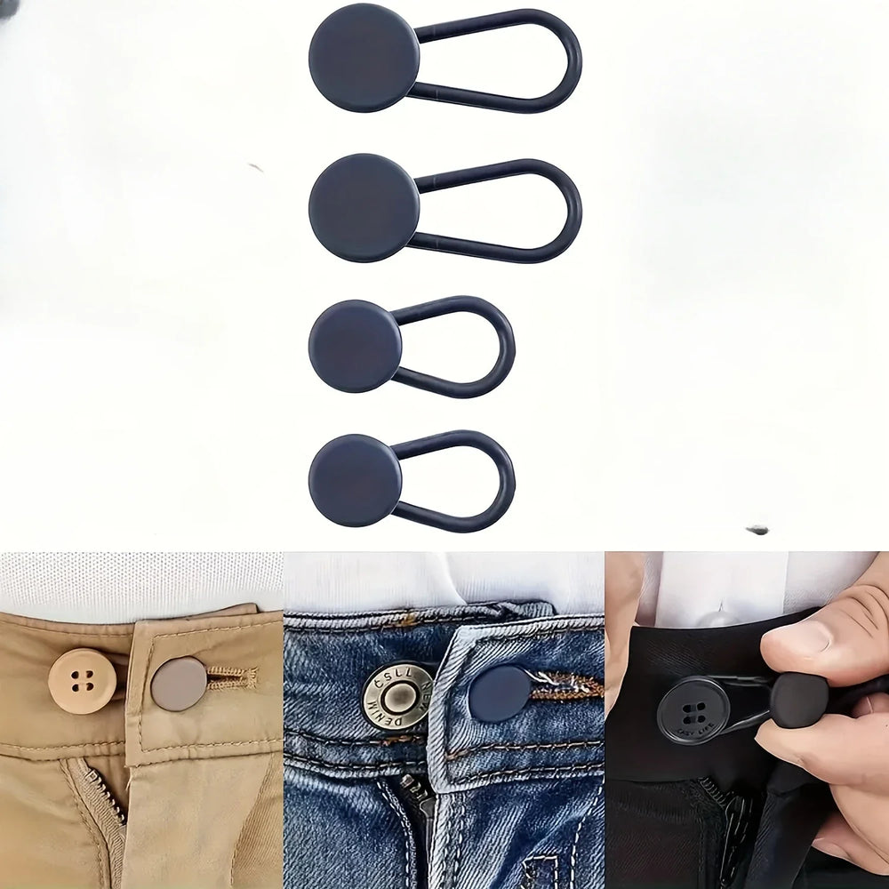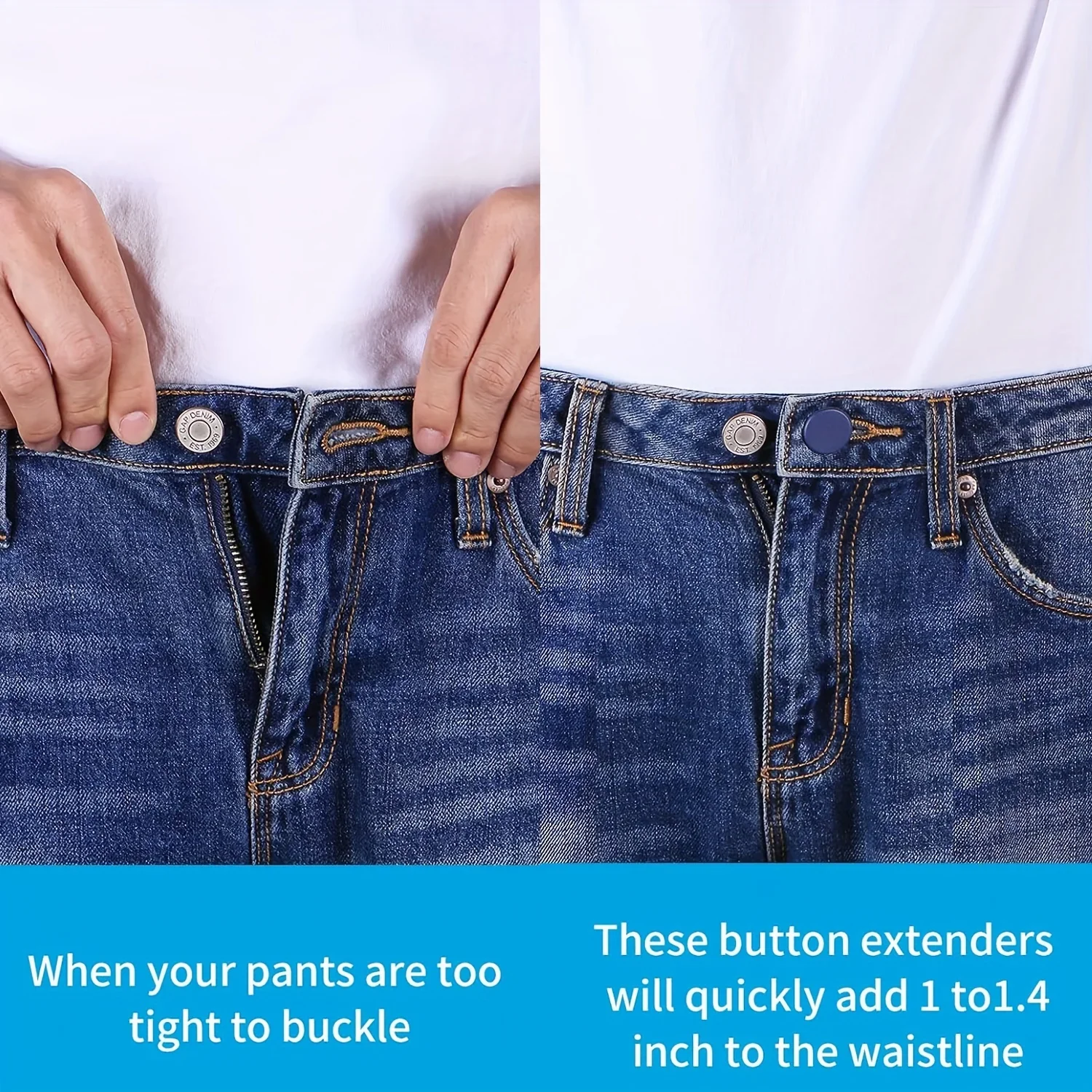 Easy-Adjust 4/12-Pack No-Sew Jean Waist Extenders - Adjustable Pants Button Expanders Adds 1-1.4 Inch Unisex In Khaki/Blue/Black