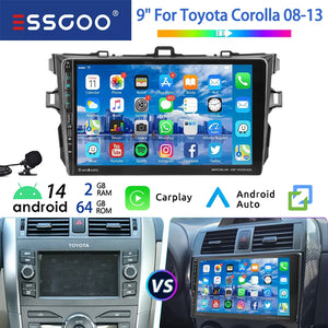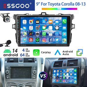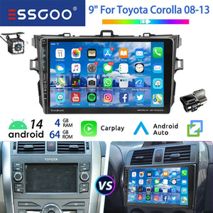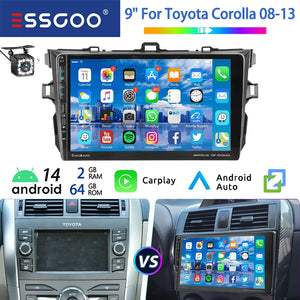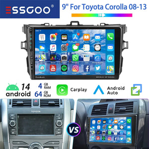 ESSGOO 9" 64G Android 14 Car Stereo For Toyota Corolla 09-13 Carplay Android Auto GPS Navi WIFI BT Multimedia Player Head Unit