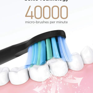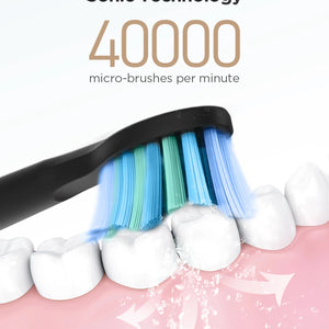 Sonic TechnologyWith the power powerful ultrasonic cleaning technology you will get A Cleaning That Is So Thorough You Will Feel As If You Just Got Out Of The Dentist's Chair. The W Tooth-Waved Bristles are made with Dupont nylon, to suit teeth topography for thorough cleaning of gums and hard to reach areas |