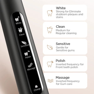 Coffee Stain? Sensitive Gums? Inter-dental stains?These are not the problems.Because Fairywill Electric Toothbrush 508 provides 3 different strong modes. To fit in your gums and teeth, you can choose the appropriate mode while brushing your teeth. Enjoy the brushing interest! CLEAN mode can remove 10X more stains along the gum. SENSITIVE mode is designed for the fresh user of electric toothbrush. Massage mode improve gum health by delivering soothing micro-bursts into tissue to improve circulation and overall health. |