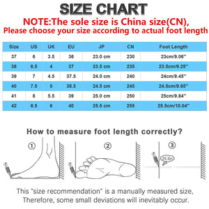 Note: The size mark on the shoes is Chinese size. We suggest you choose the right size according to the foot length