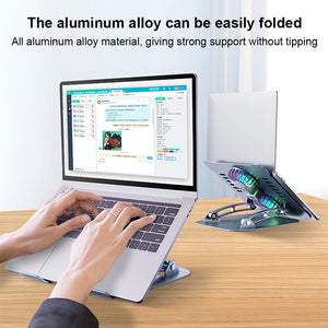 Foldable Desktop Laptop Cooling Stand Adjustable Height with 2 Cooling Fan Notebook Laptop Riser Metal Holder Anti-slip Computer Stand for Tablet Notebook Up To 15.6 Inch