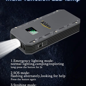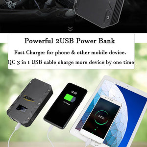 Starting a dead battery of a 12V gasoline car and diesel car just in seconds. When you are travelling in some untraversed place, and your car battery is out of power, you can use this car jump starter to start your car.