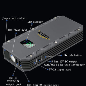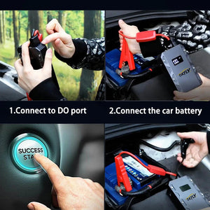 Starting a dead battery of a 12V gasoline car and diesel car just in seconds. When you are travelling in some untraversed place, and your car battery is out of power, you can use this car jump starter to start your car.