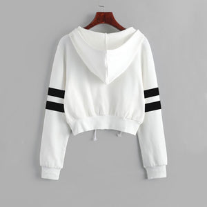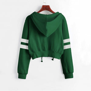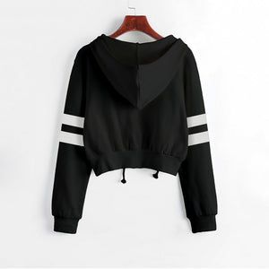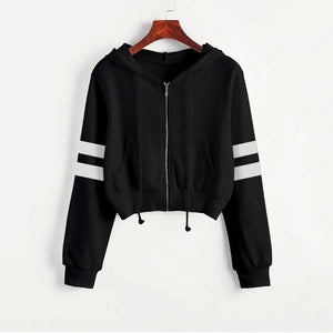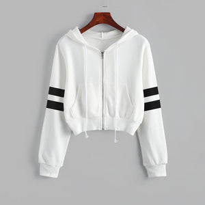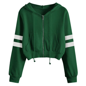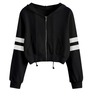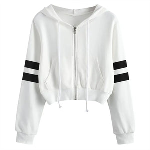 Harajuku Stripe Color Block Cropped Hoodies Teen Girls Women Autumn Zip Up Crop Tops Sweatshirts Pocket Hooded Jackets Moletom