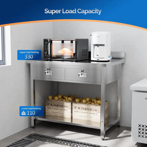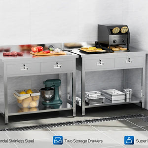 Heavy Duty Metal Prep & Work Table with Undershelf for Commercial Kitchen, Restaurant, Home, Hotel and Garage