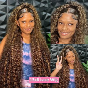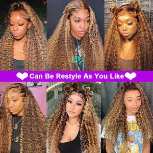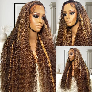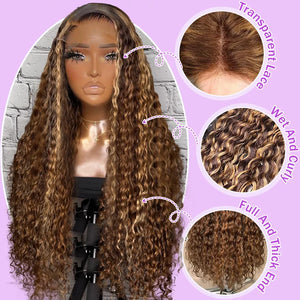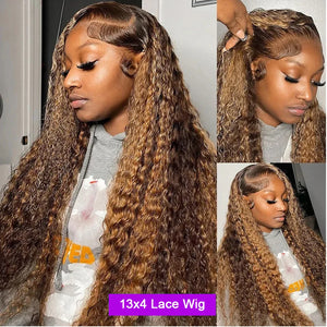 Highlight Honey Blonde Omber 4/27 Water Curly Wave Wig