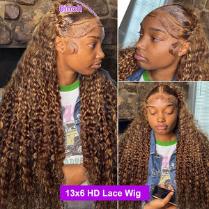 High Density Highlight Water Culry 13x4 HD Lace Frontal Human Hair 32 34 Inch Deep Wave 13x6 Lace Frontal Wig For Black Women