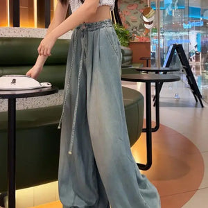 Jeans 2024 Summer New Drape Wide Legs Elastic and Versatile Ins Trendy Versatile Trousers Boyfriend Jeans for Women Pants Women