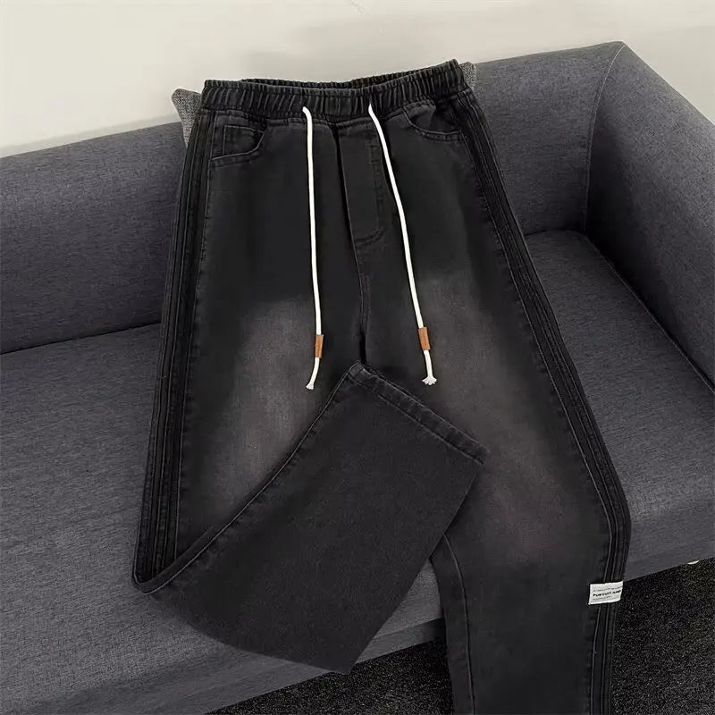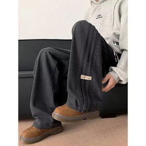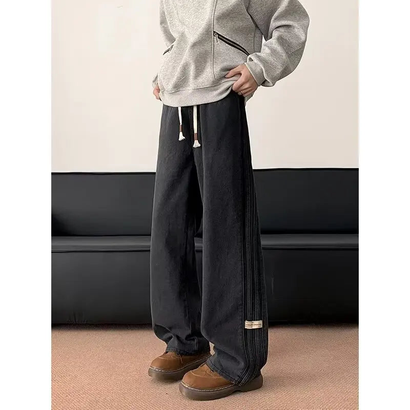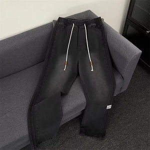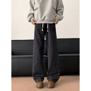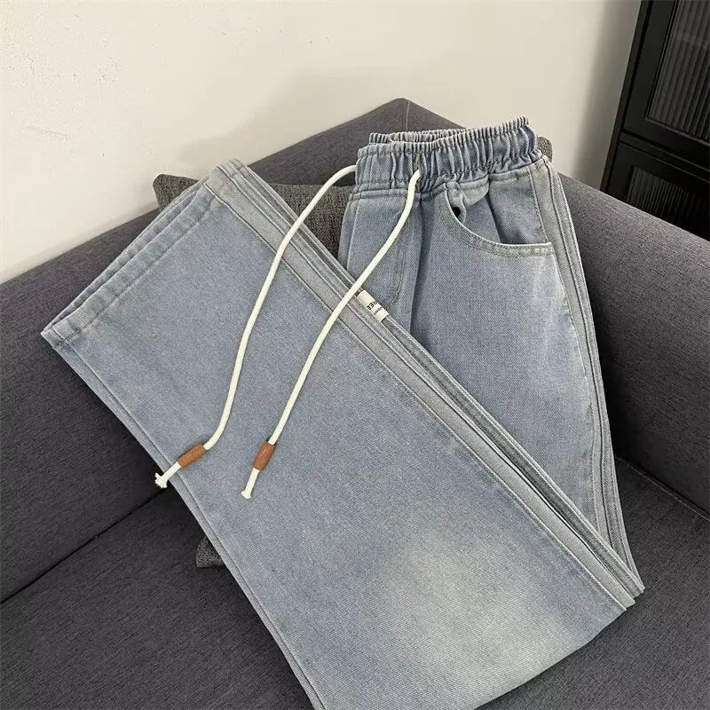 Jeans Men 2025 Spring Autumn American Style Vintage Loose Straight Leg Long Pants Men's Youth Popular Drawstring Wide Leg Pants