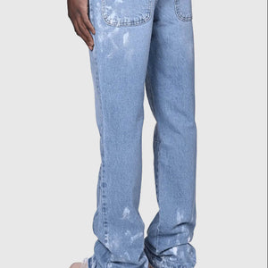 Jeans Men Vintage Straight Pants Mid Waist Stretch Distressed Washed Pockets Button Basics Trousers 2025 Streetwear Denims