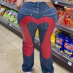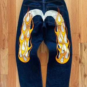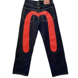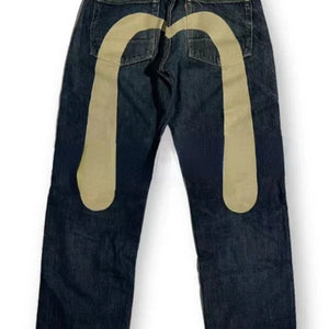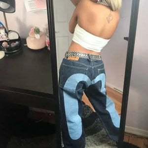 Jeans Women Gothic Y2K Retro Streetwear Black Cargo Punk Vintage Kpop Print Wide Leg Denim Panrts Female Autumn Trousers Pants