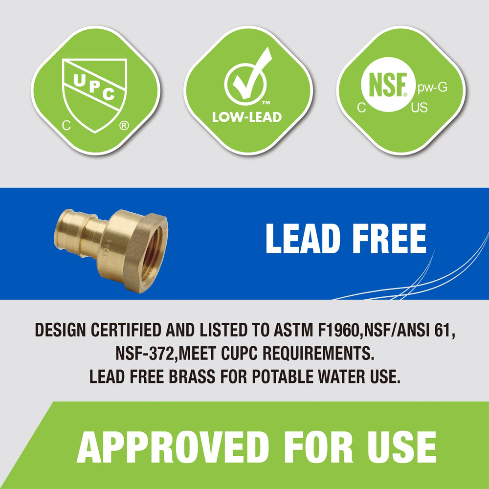 3/4" F1960 PEX * 3/4" FEMALE NPT LEAD FREE BRASS STRAIGHT FEMALE ADAPTER;