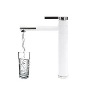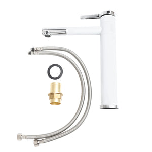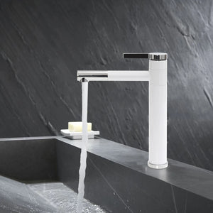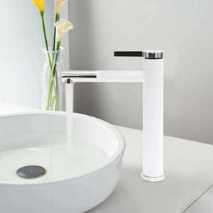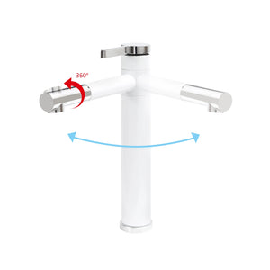 Kitchen 360° Rotatable Tap Bathroom High Washbasin Mixer Tap White Single Lever Mixer Tap for Bathroom Brass