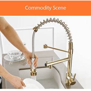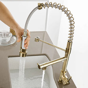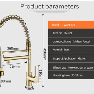 Kitchen Faucets Gold Torneira Para Cozinha Faucet for Kitchen Sink Single Pull Out Spring Spout Mixers Hot Cold Water Tap 866021
