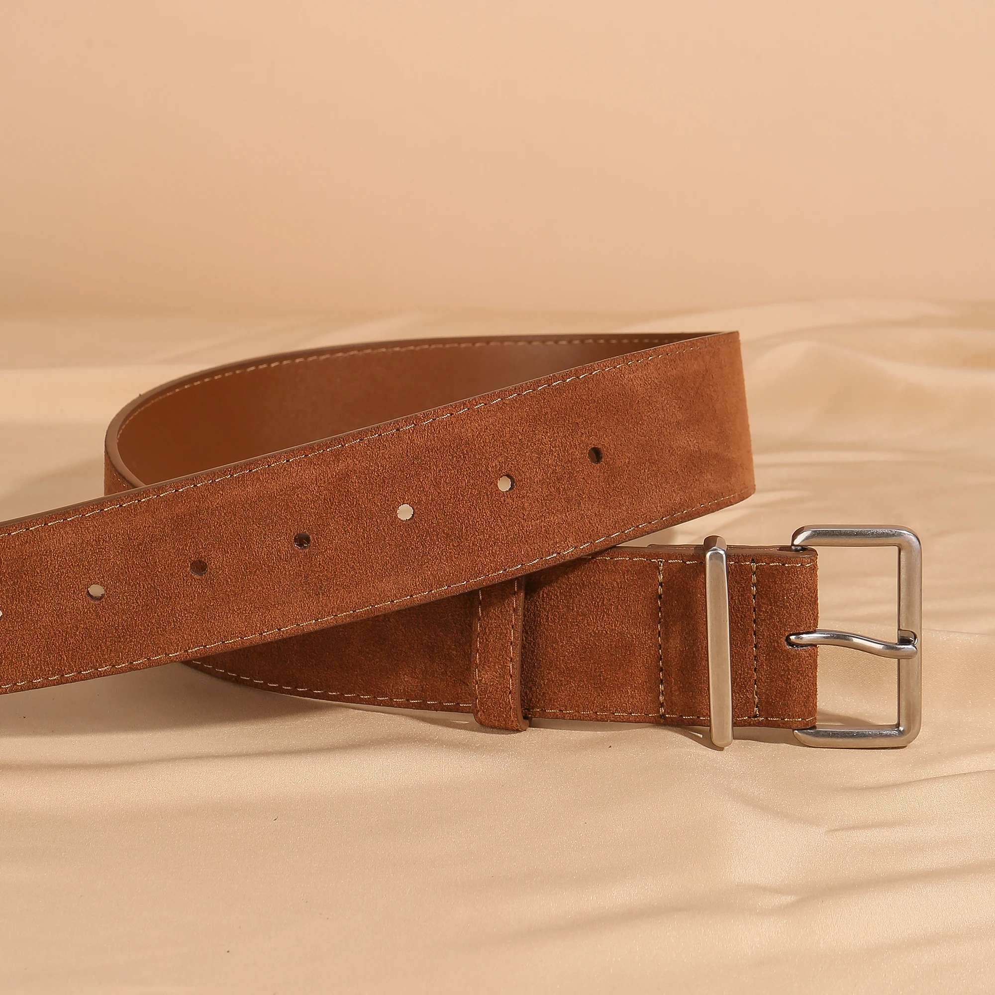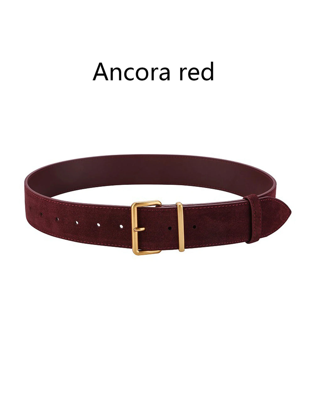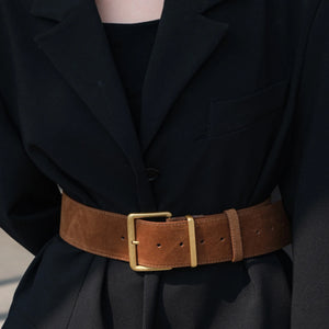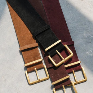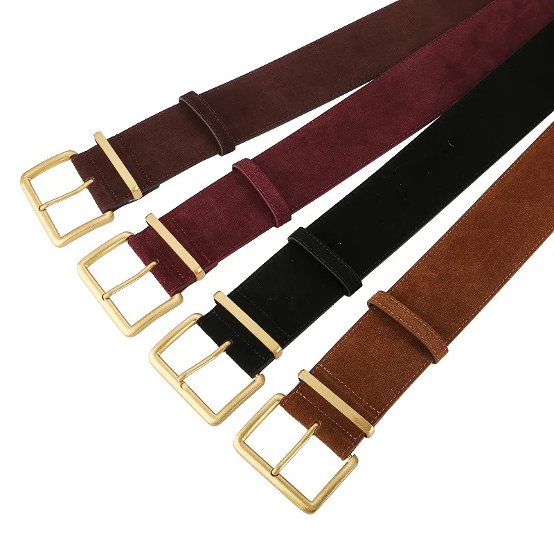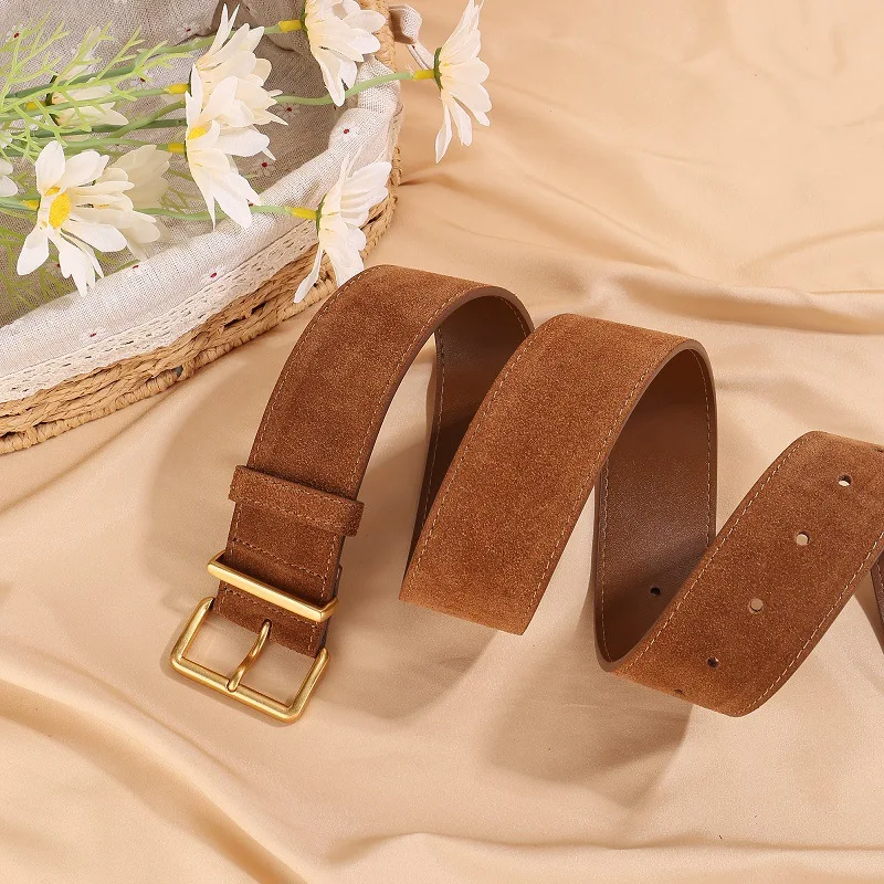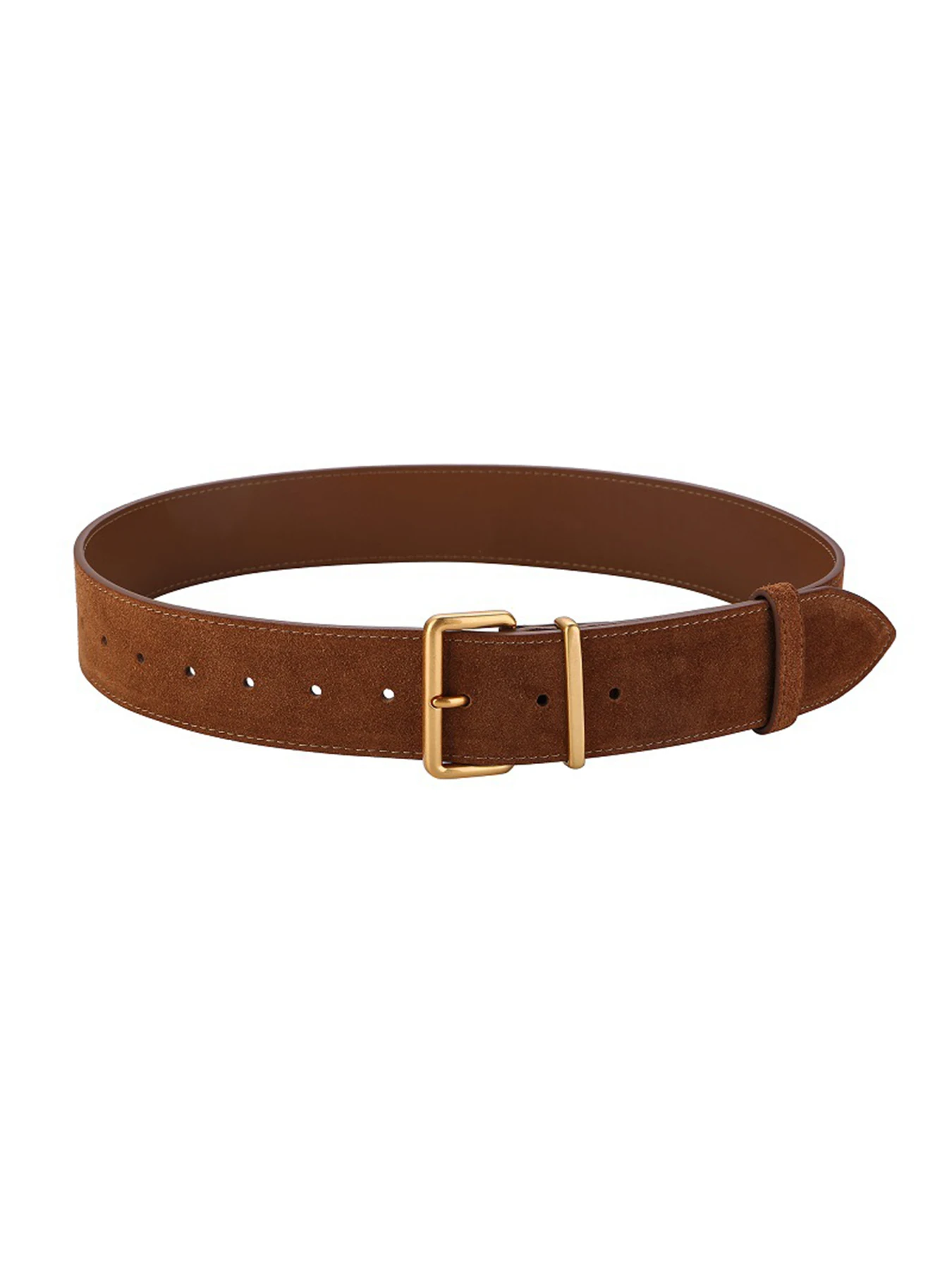 Ladies elegant suede cowhide belts retro style, with gold buckle 4.3cm wide belts suitable for matching dresses and jeans