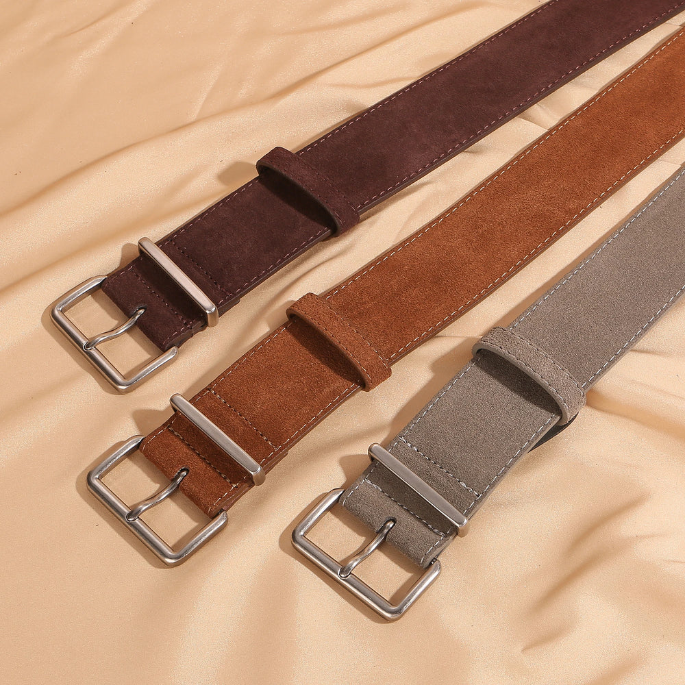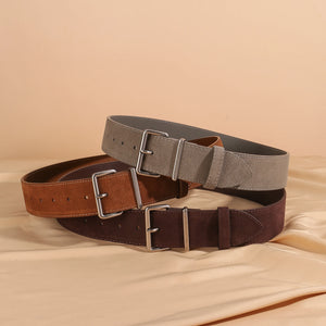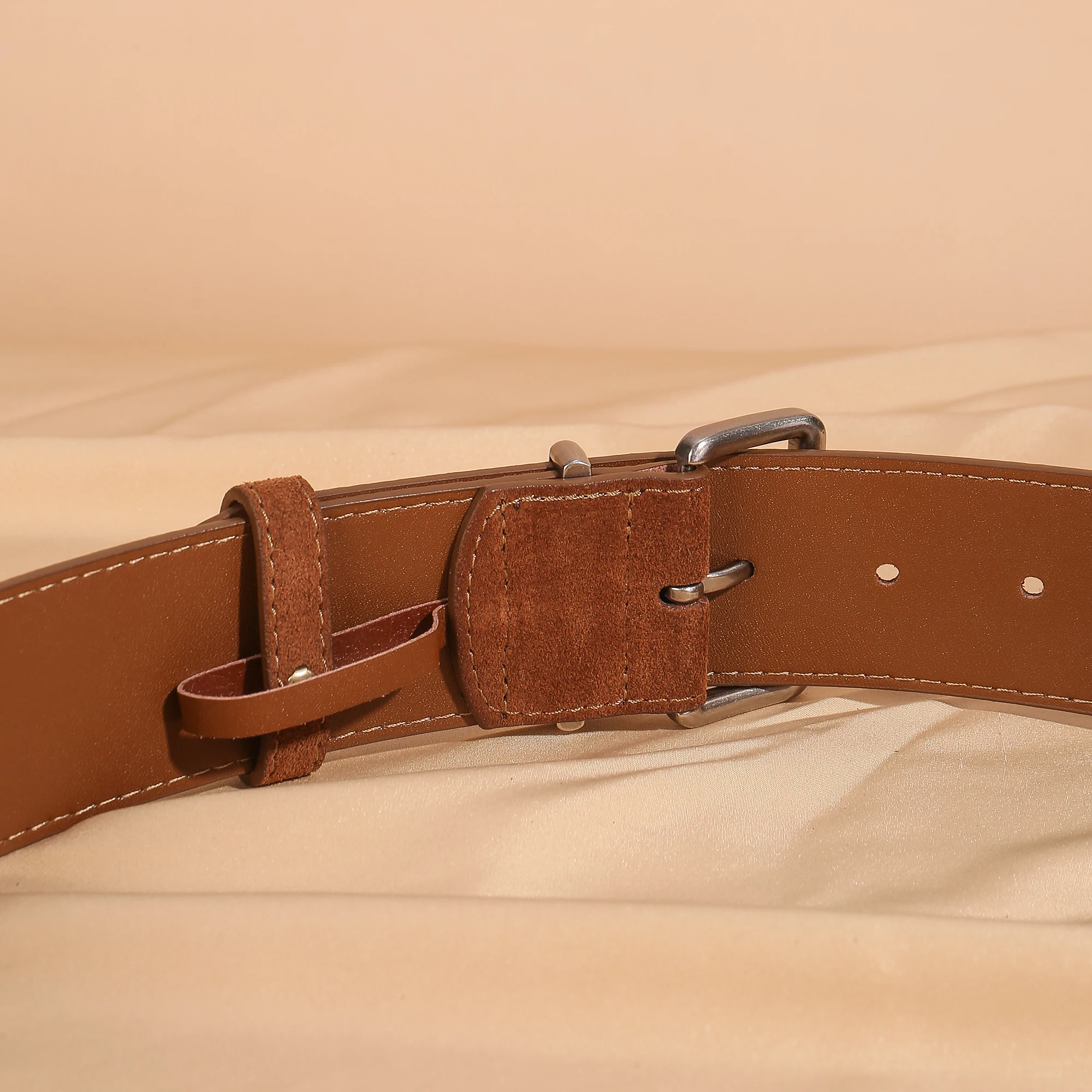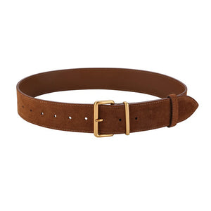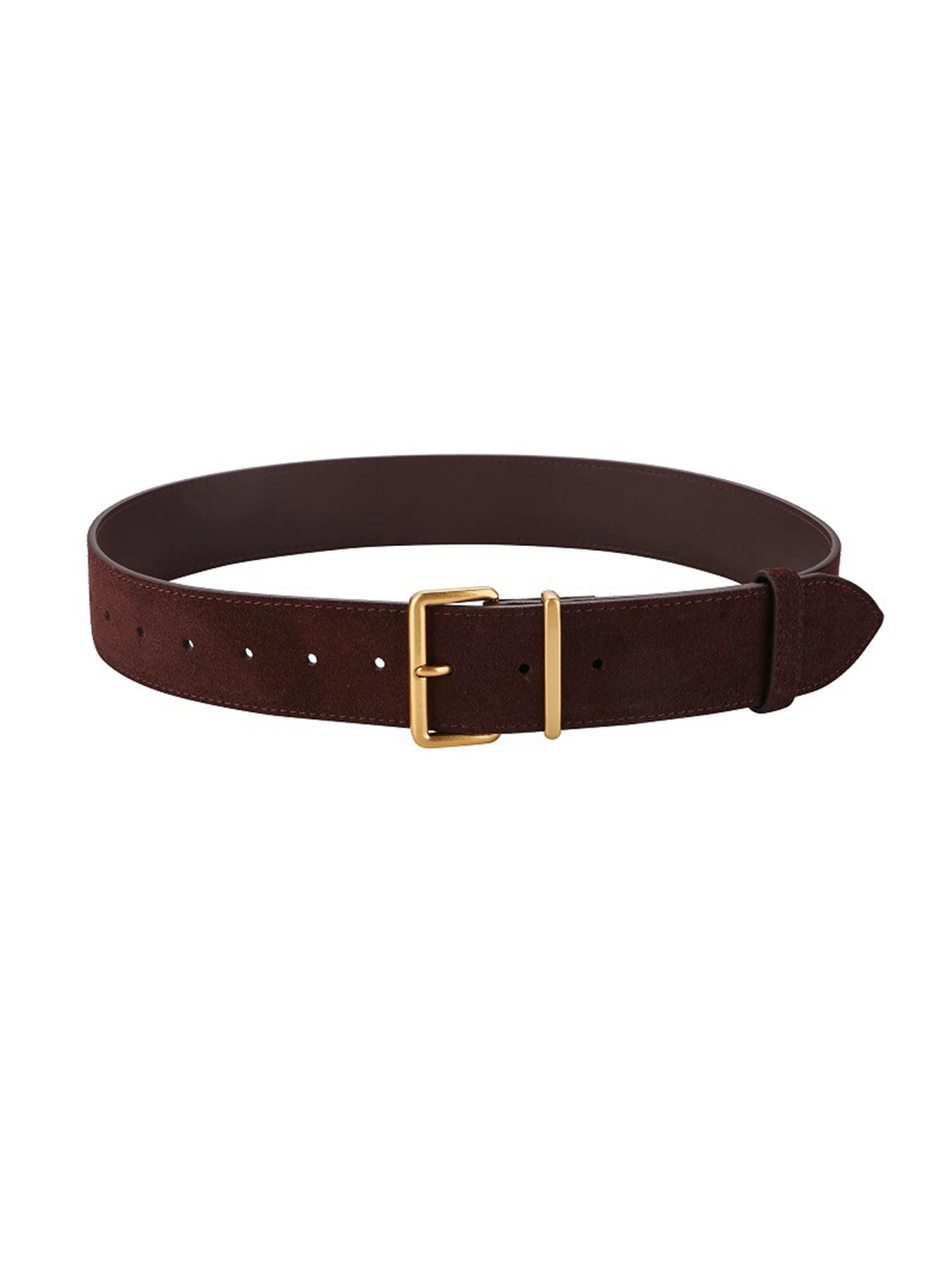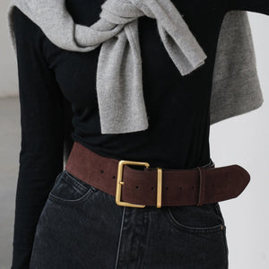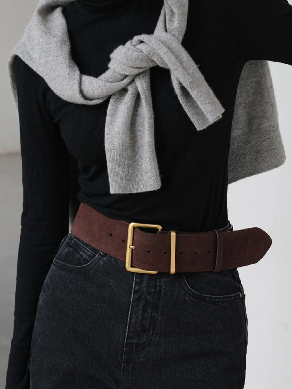 Ladies elegant suede cowhide belts retro style, with gold buckle 4.3cm wide belts suitable for matching dresses and jeans