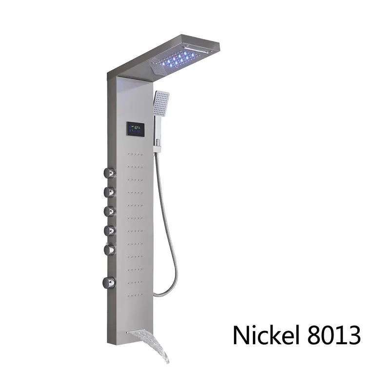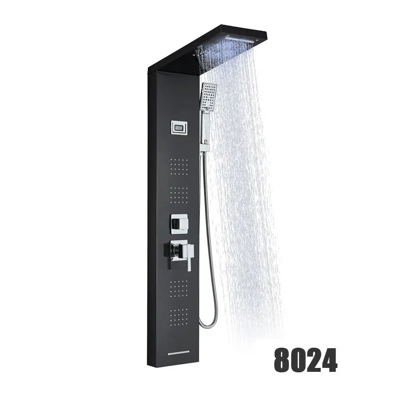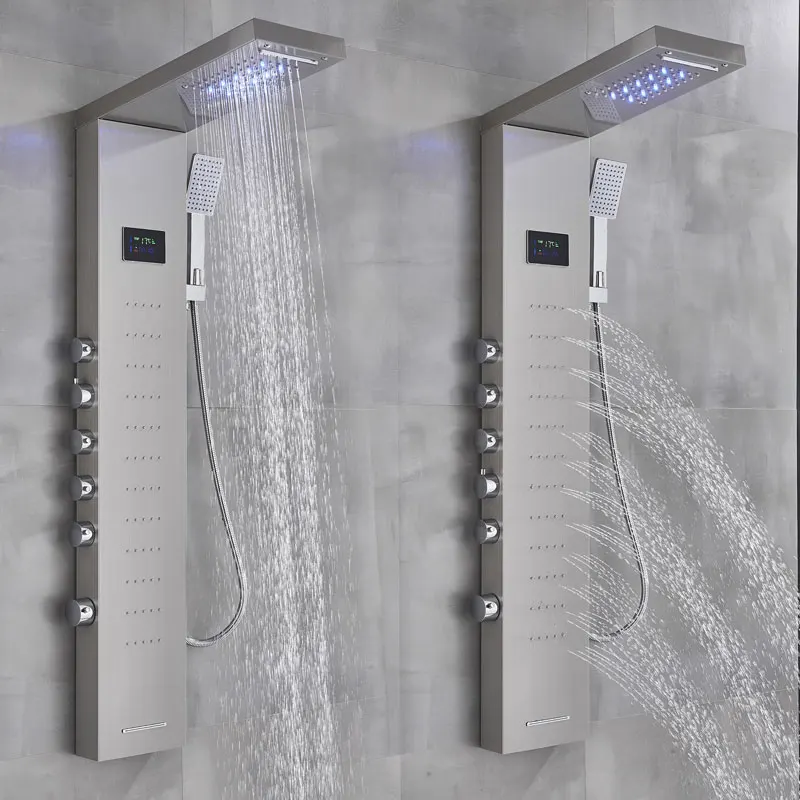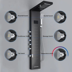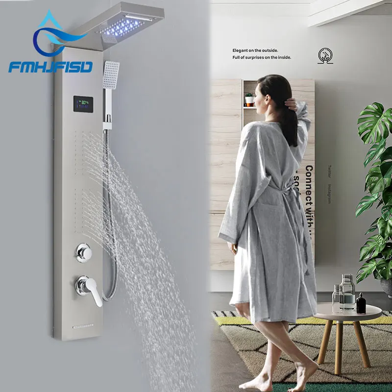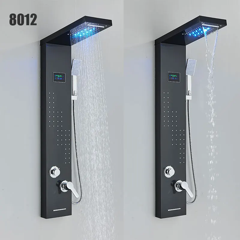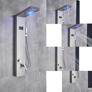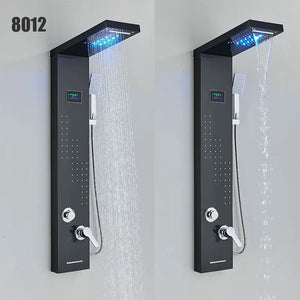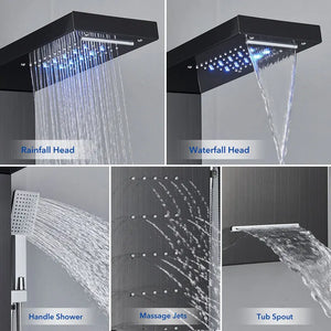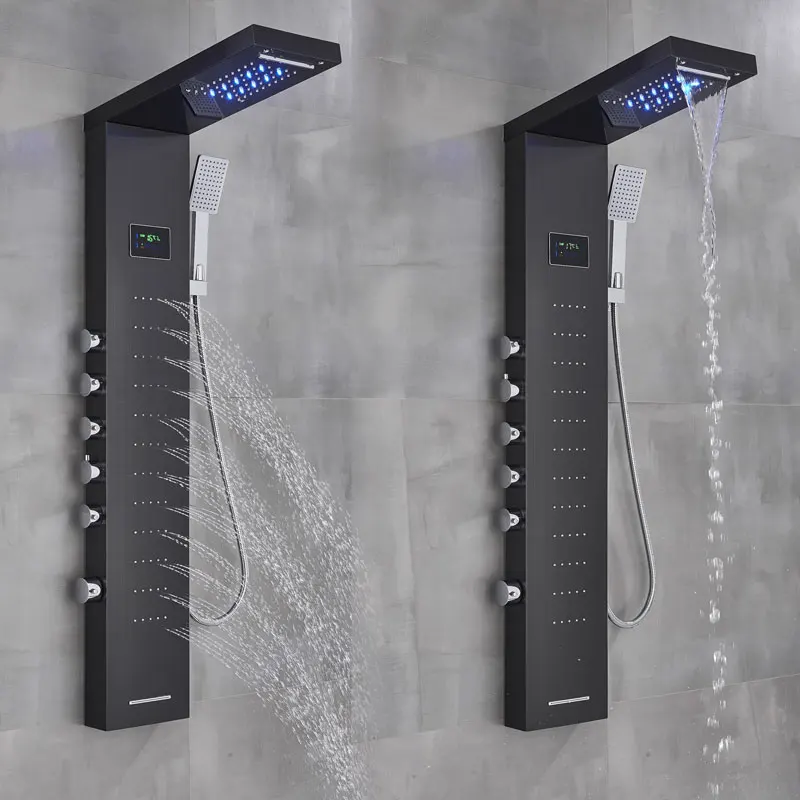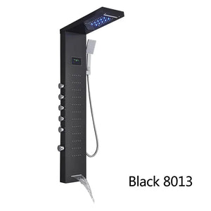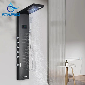 LED Shower Pannel Temp Display Screen Rainfall Shower Head Waterfall Tub Faucet Wall Mount Big Massage Bathroom Shower Systems