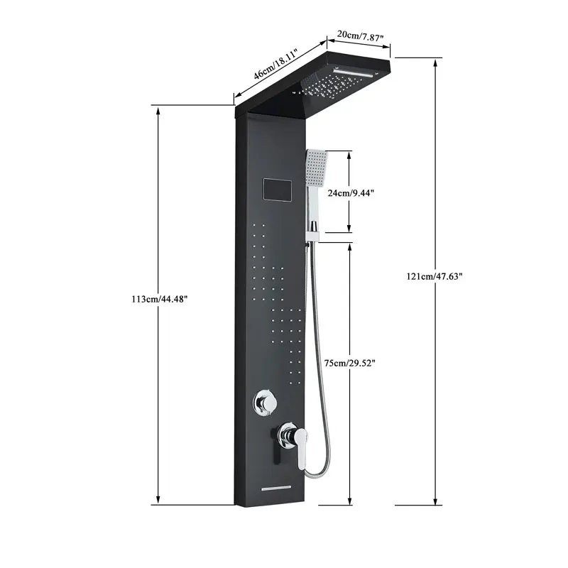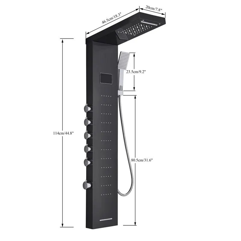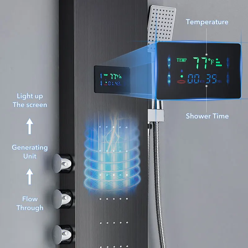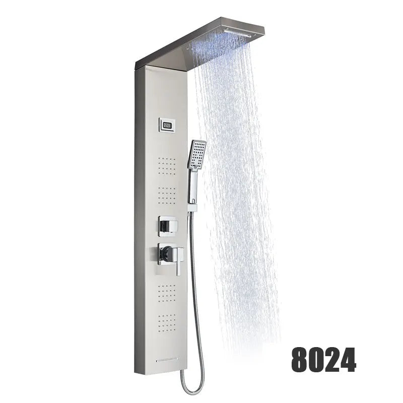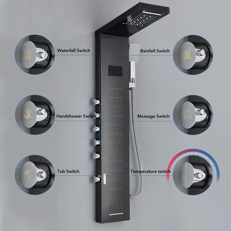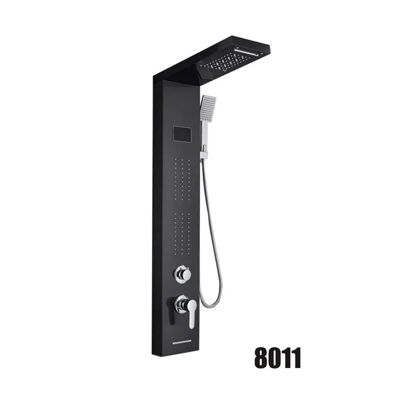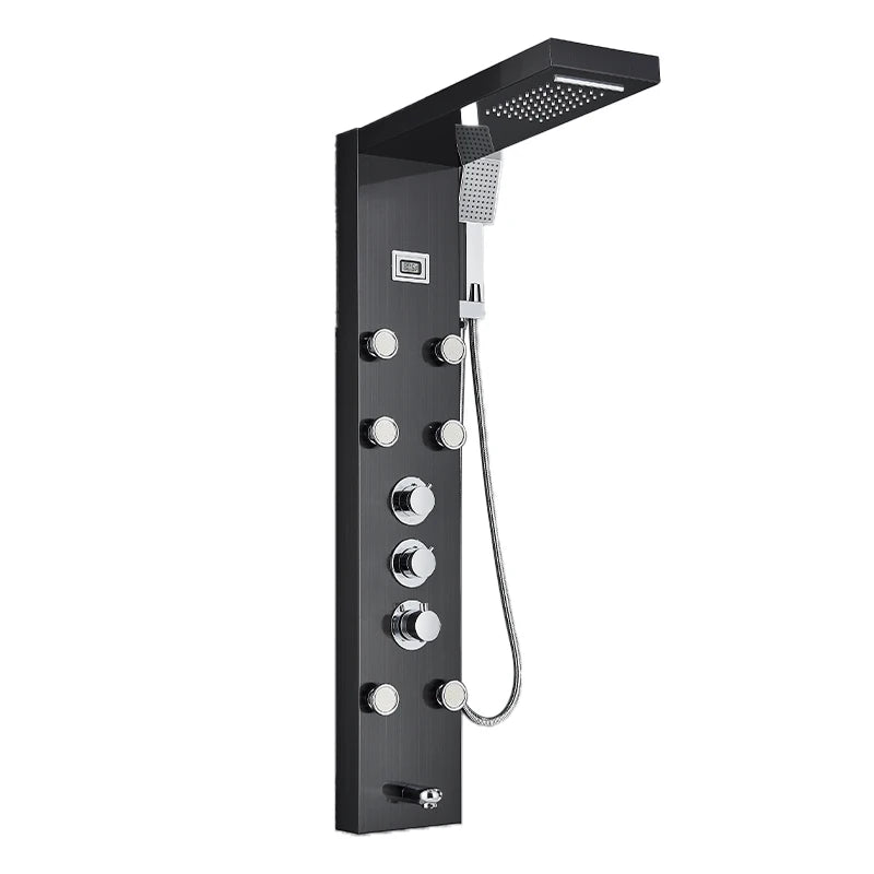 LED Shower Pannel Temp Display Screen Rainfall Shower Head Waterfall Tub Faucet Wall Mount Big Massage Bathroom Shower Systems