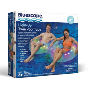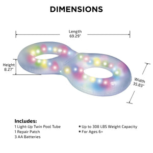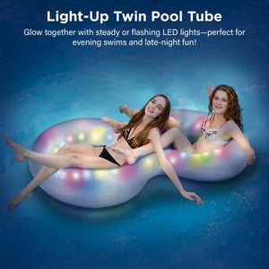 LED Twin Tube Inflatable LED LightUp Pool Ring Waterproof Floating Tube for Nighttime Fun