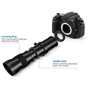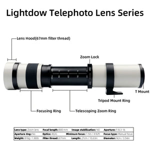 Lightdow 420-800mm F8.3-16 Super Telephoto Lens Manual Zoom Lens for Canon Nikon Sony Pentax FUji Olympus DSLR Cameras