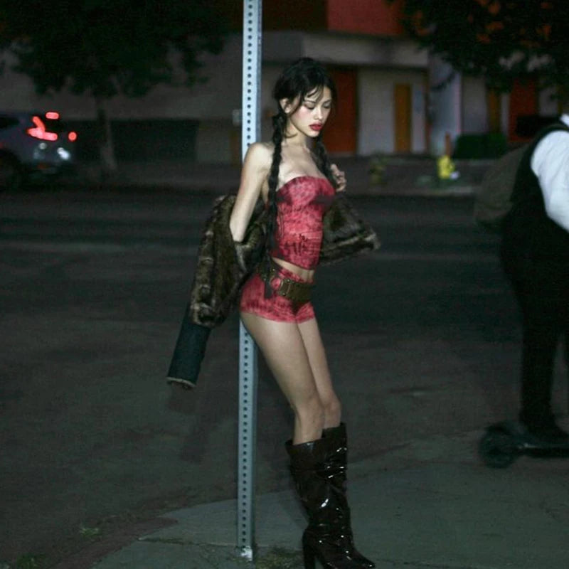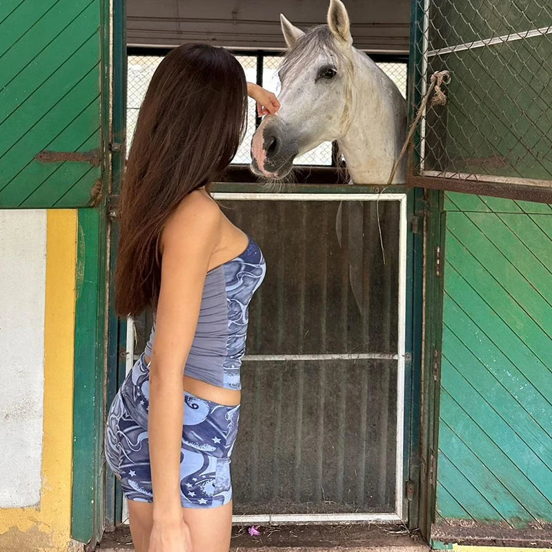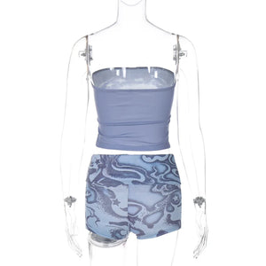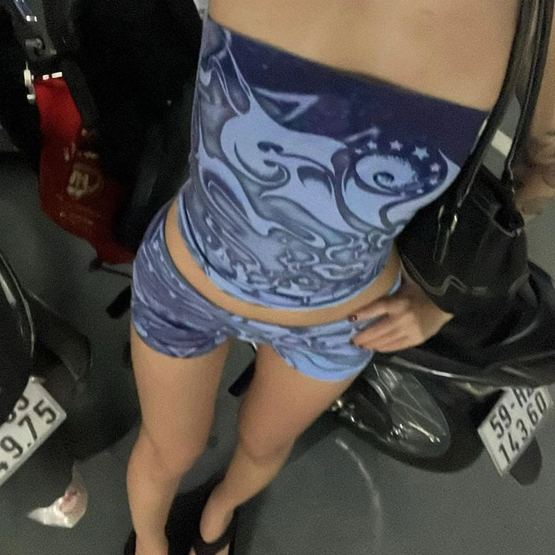 Lygens Tie Dye Print Slim Corset Tops Short Pants Women'S Sets Summer Y2K Streetwear Fashion Wholesale Korean Casual Clothing
