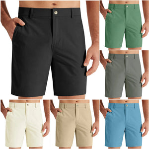 Men Summer Casual Solid Color Shorts With Pockets Casual Summer Elastic Button Shorts