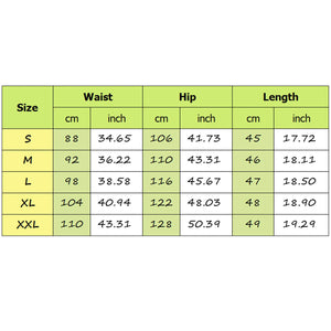 Size:S | Waist:88cm/34.65'' | Hip:106cm/41.73'' | Length:45cm/17.72'' |