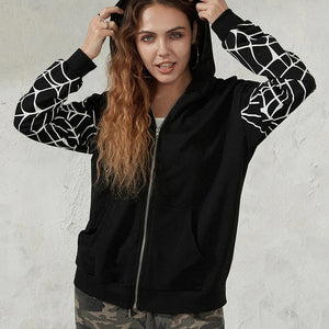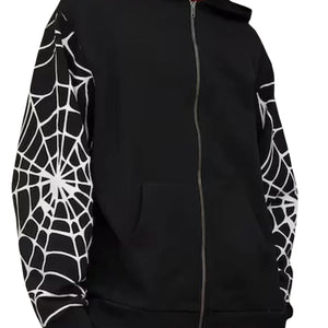 Men Women Zip Up Hoodies Fashion Spider Web Print Long Sleeve Oversized Sweatshirts Streetwear TopsFeatures: