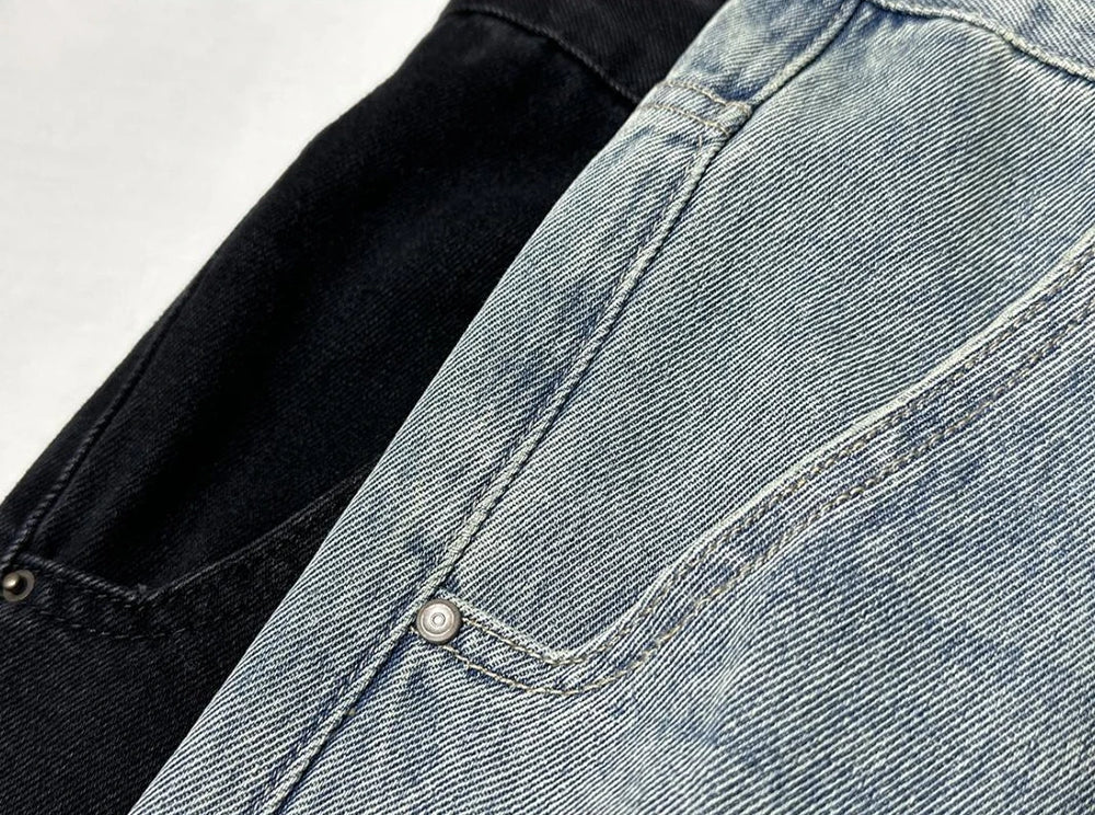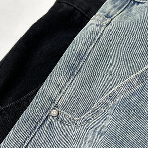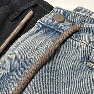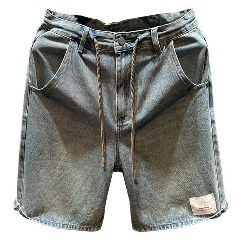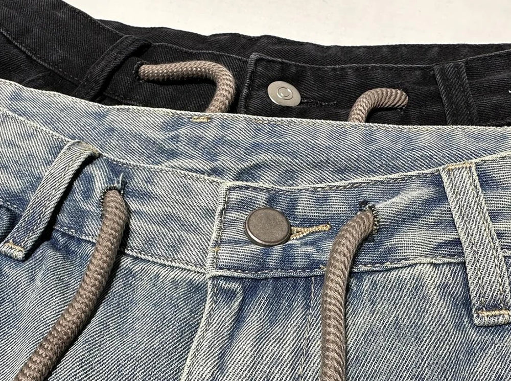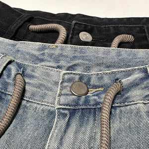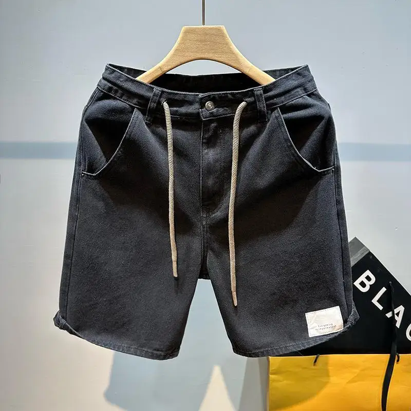 Men's Short Jeans Pants Buttons Black Wide Drawstring Male Denim Shorts Loose Baggy Summer Korean Fashion Harajuku Y2k Cowboy Xl