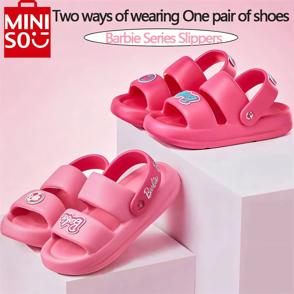 Miniso Barbie Eva Summer Women Fashion Cute Outdoor Non Slip One Shoe Two Ways To Wear It Slippers Indoor Soft Sole Sandal