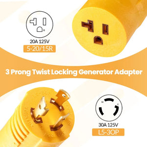 NEMA L530P to 515 20R RV Generator Adapter MECMO Marine 30 Amp to 110 15 Amp Household Regular Connector 30A 3 Prong Twist Lock